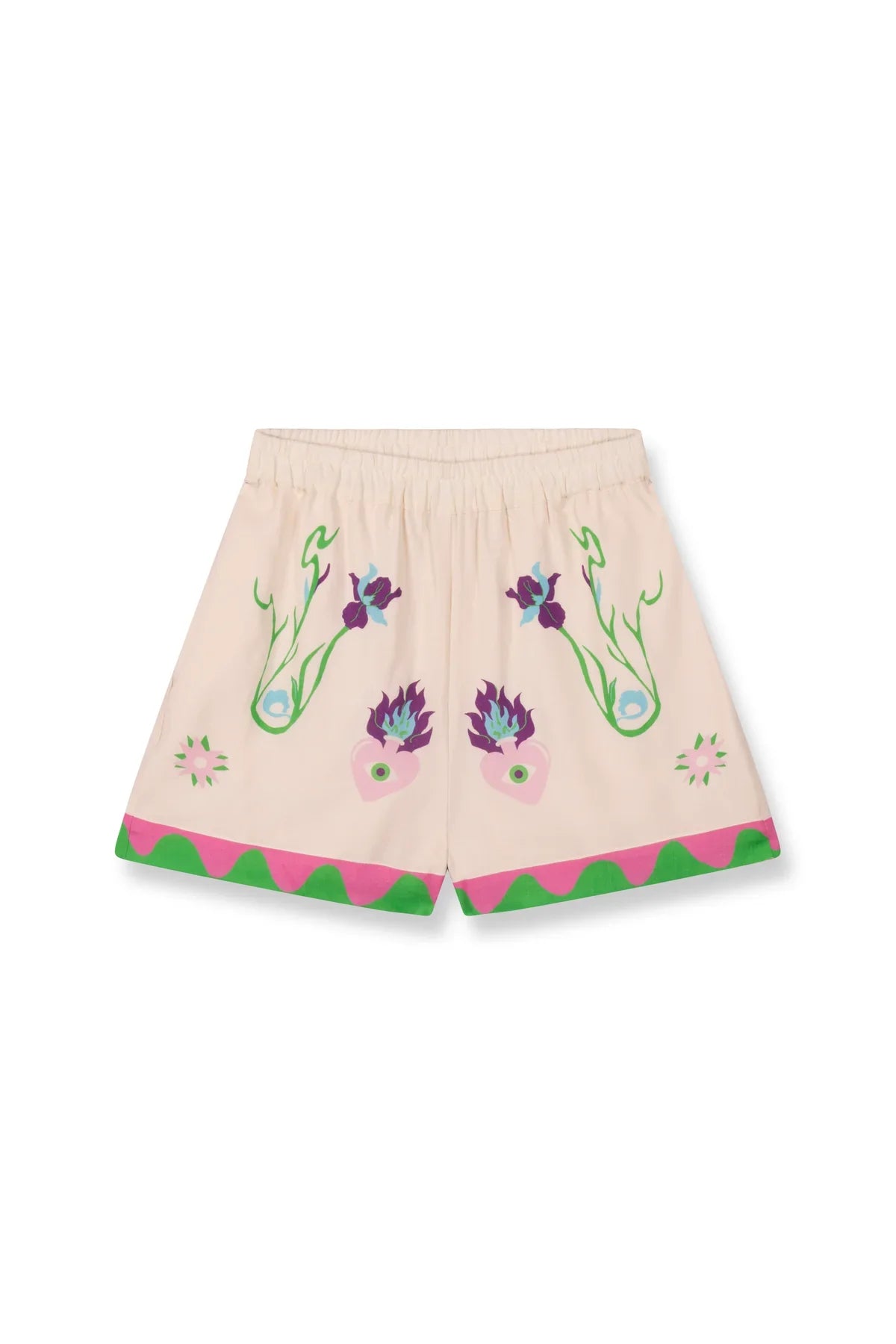 De Alice Short is jouw nieuwe go-to voor zonnige dagen. Deze losvallende short is gemaakt van 100% ademende viscose en hebben een all-over print die jouw look direct laat opvallen. De elastische tailleband zorgt voor een comfy fit, terwijl de steekzakken aan de zijkant net dat beetje extra functionaliteit geven. Combineer ze met de bijpassende Alana Blouse voor een leuke matching zomer set!