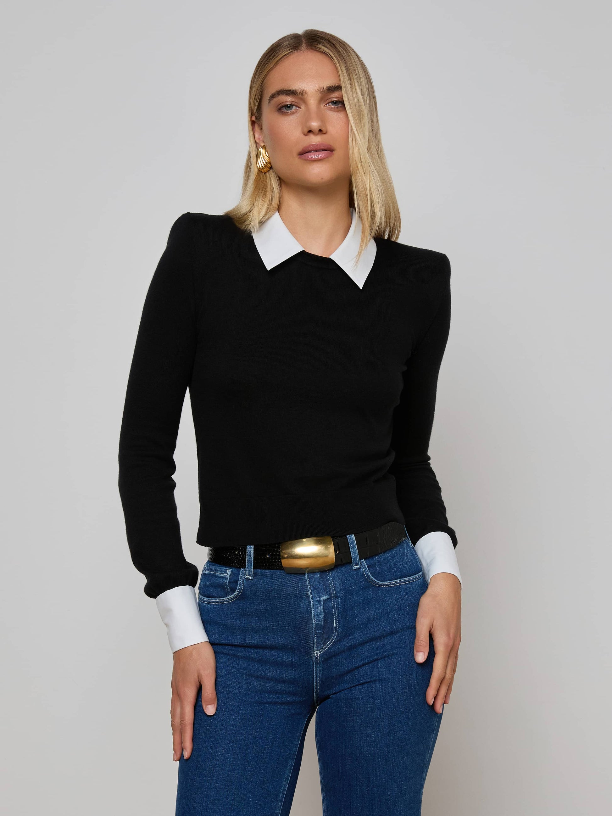A closet must-have, the April is a pullover featuring a crisp poplin collar and cuffs, giving the illusion of layered shirting. Crafted from a soft knit, it’s a polished essential with timeless appeal.