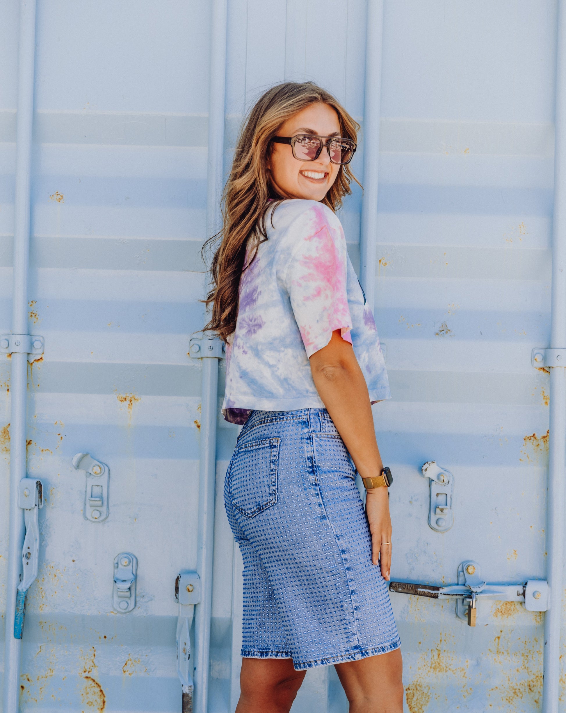 De Bibi Bermuda Short in Strass Denim is een denim short met een bermuda fit. De short is voorzien van een high waist, riemlusjes en 5 zakken. De short heeft een lichte stretch en is bedekt in strass steentjes. Combineer dit broekje met een oversized tee voor een toffe festival outfit!
