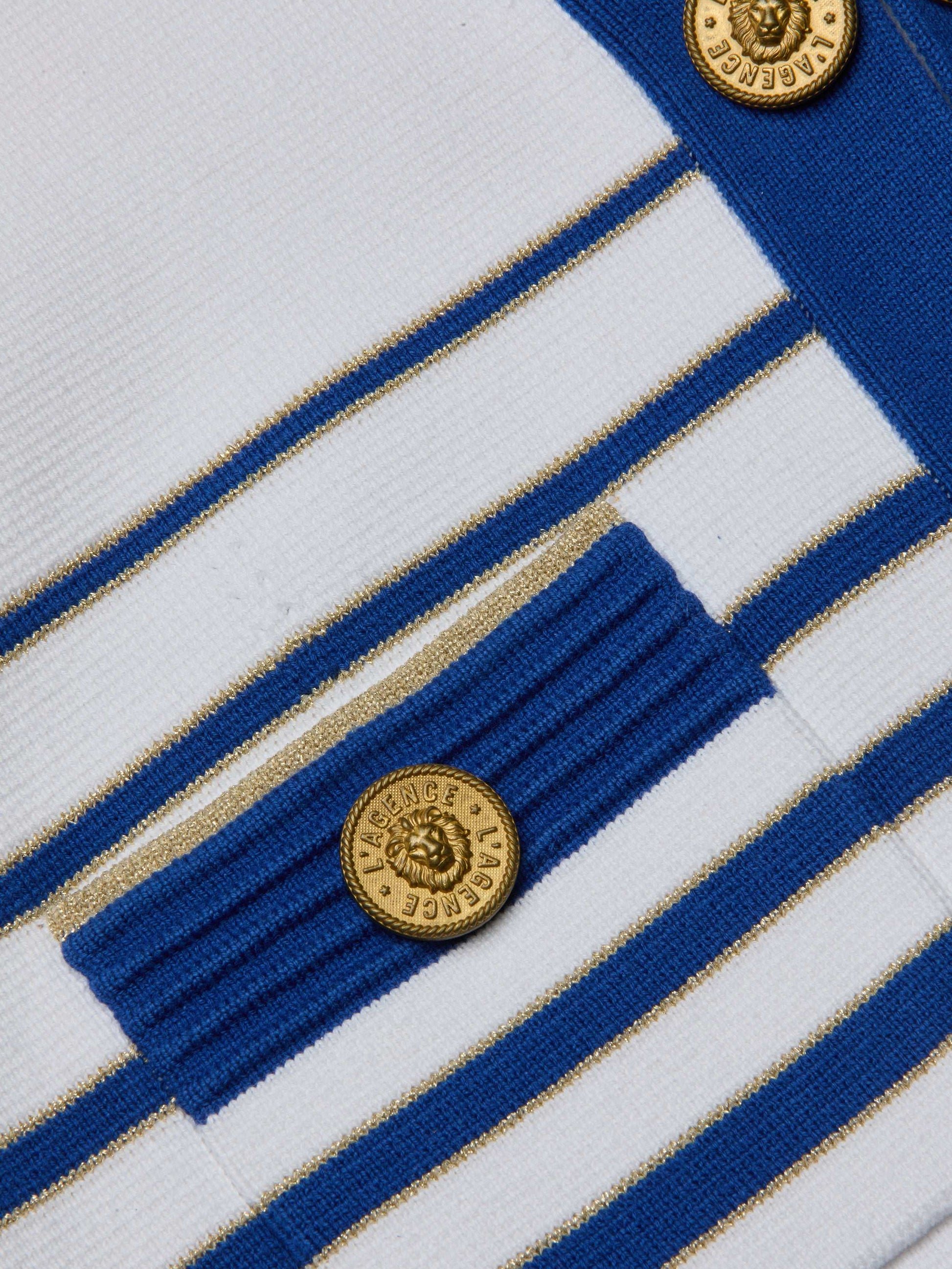 The perfect little cardigan top. Wear the Catie on its own or layered. Now in navy stripes.