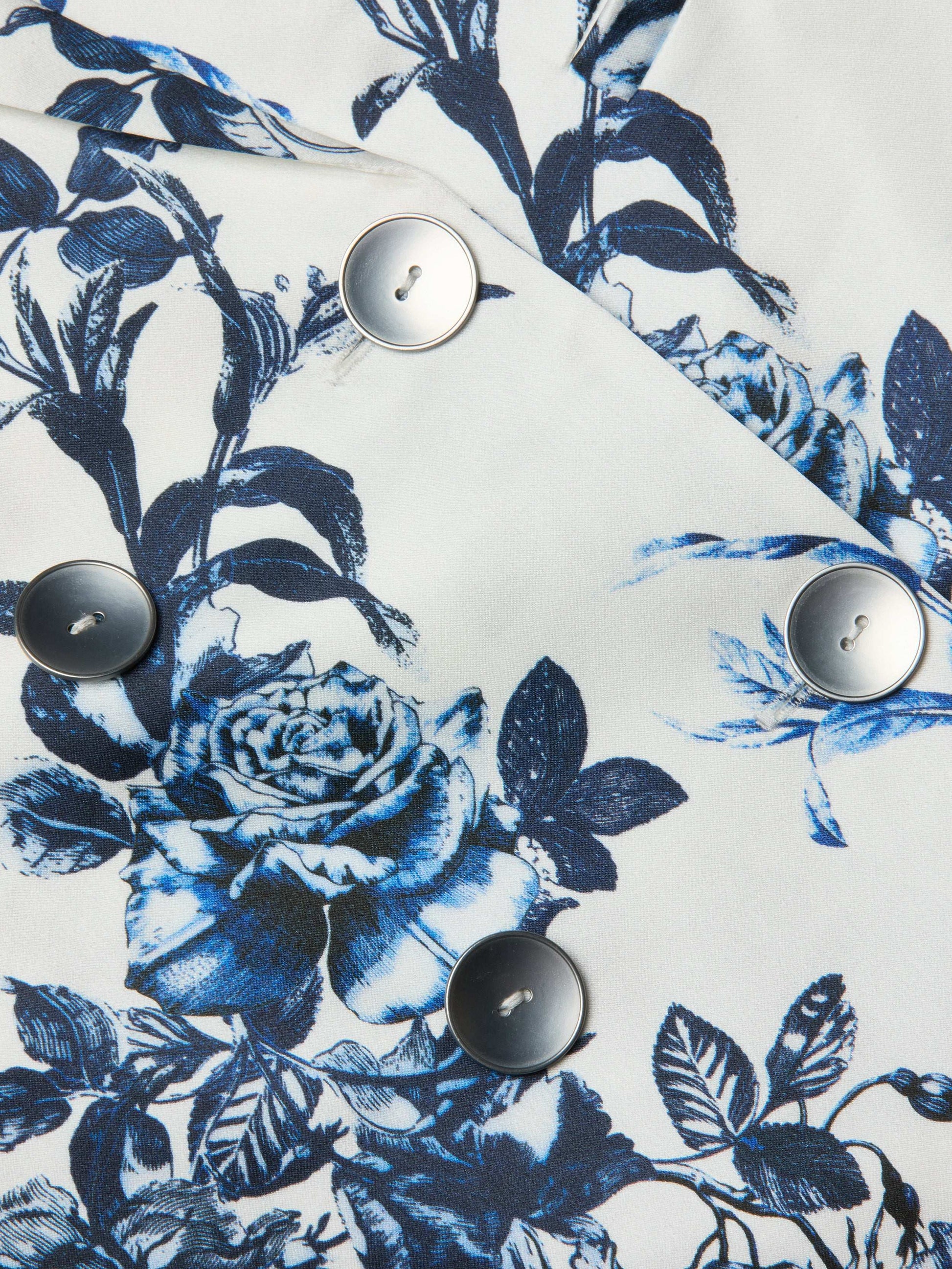 Subtle feminine shaping balances the crisp tailored details of the double-breasted Colin blazer. Now back in a blue floral print.