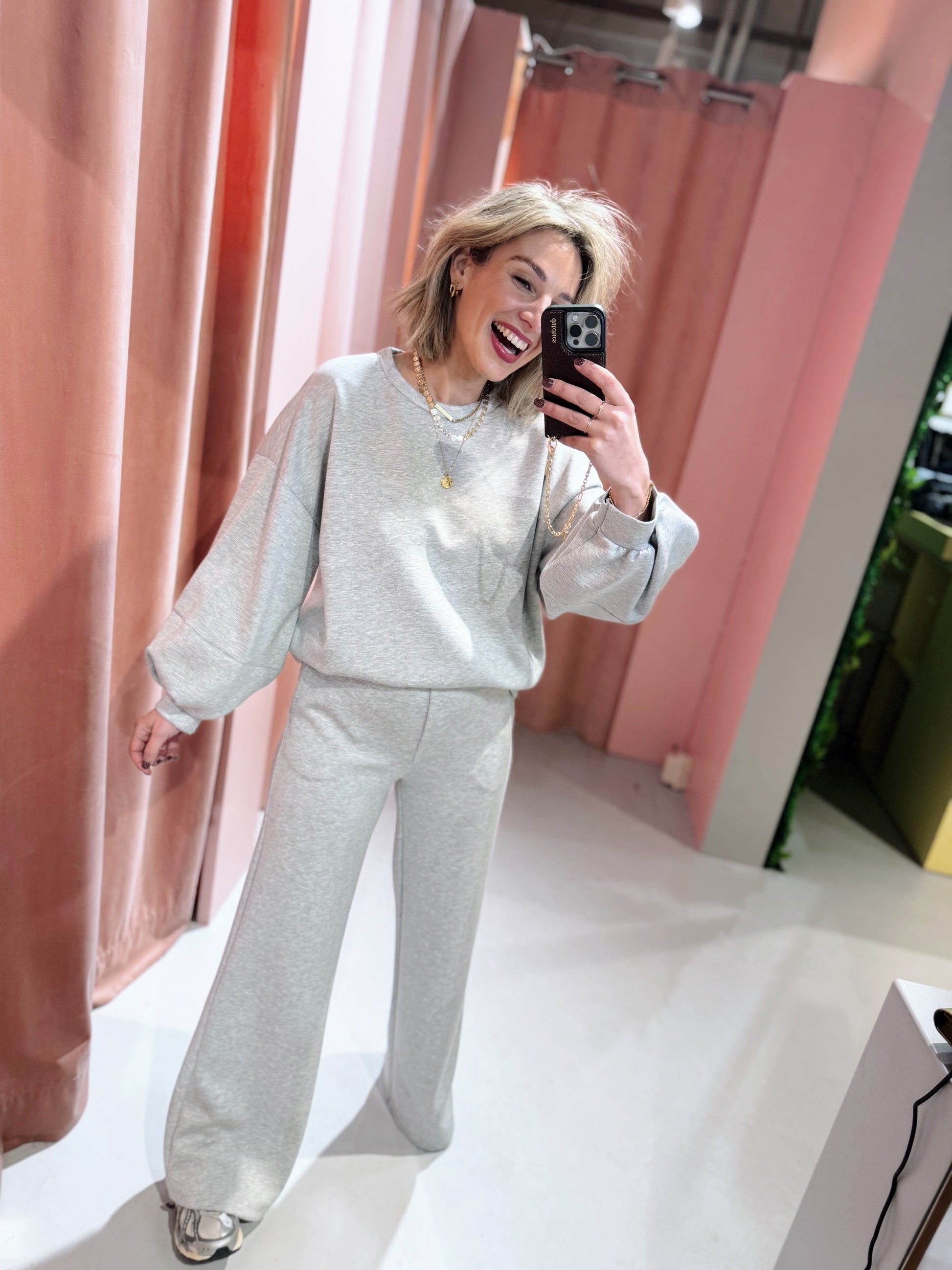 De Danouk pakken zijn terug en onmisbaar in je garderobe! Gemaakt van superzachte stof bieden ze ultiem comfort. Het pak bestaat uit een losse sweater en een broek met straight leg en zakjes, ideaal voor een relaxte maar stijlvolle look. Let op: de sweater en broek worden apart verkocht, zodat je je favoriete combinatie kunt kiezen. Een must-have voor een comfy en trendy outfit!