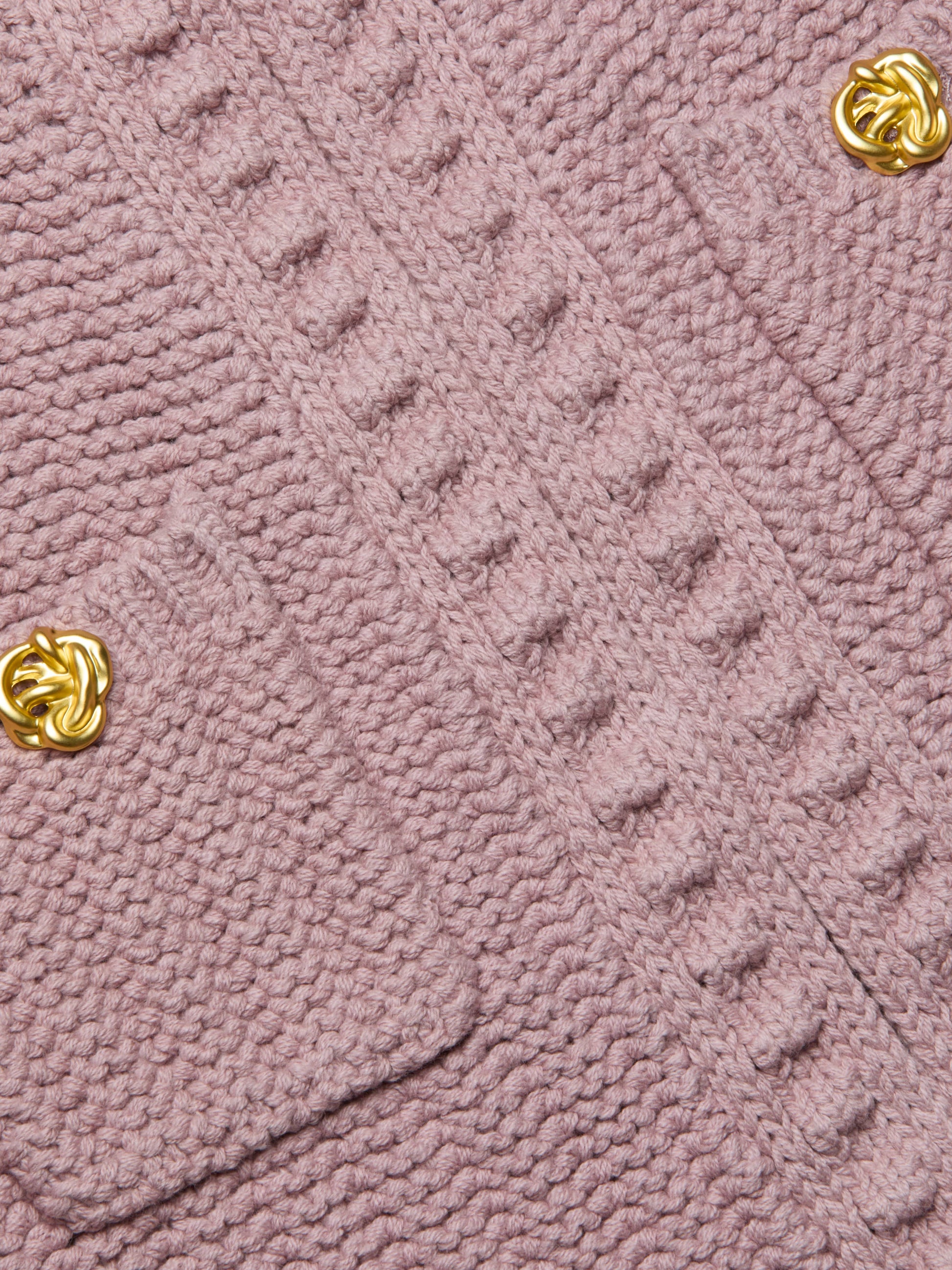 Texture and shape define the Delilah, now back in light mauve. Constructed with a structured knit and puff sleeves, this cardigan can be worn as top or second layer all season, every season.