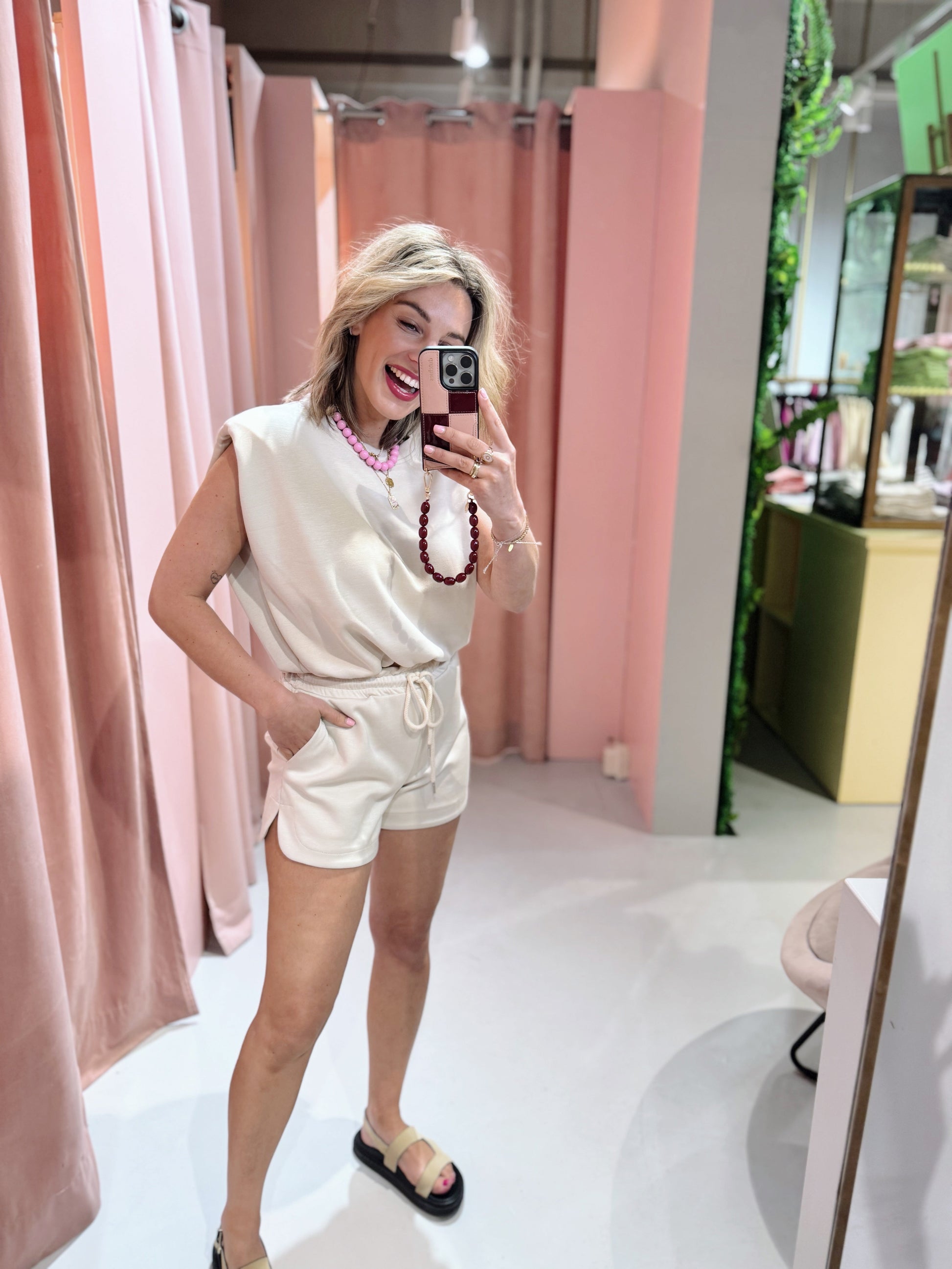 De Ellis Short in beige is een comfortabele korte short met een elastische tailleband en aantrekkoord. De short is voorzien van twee steekzakken en is leuk te combineren met de Ellis Top.