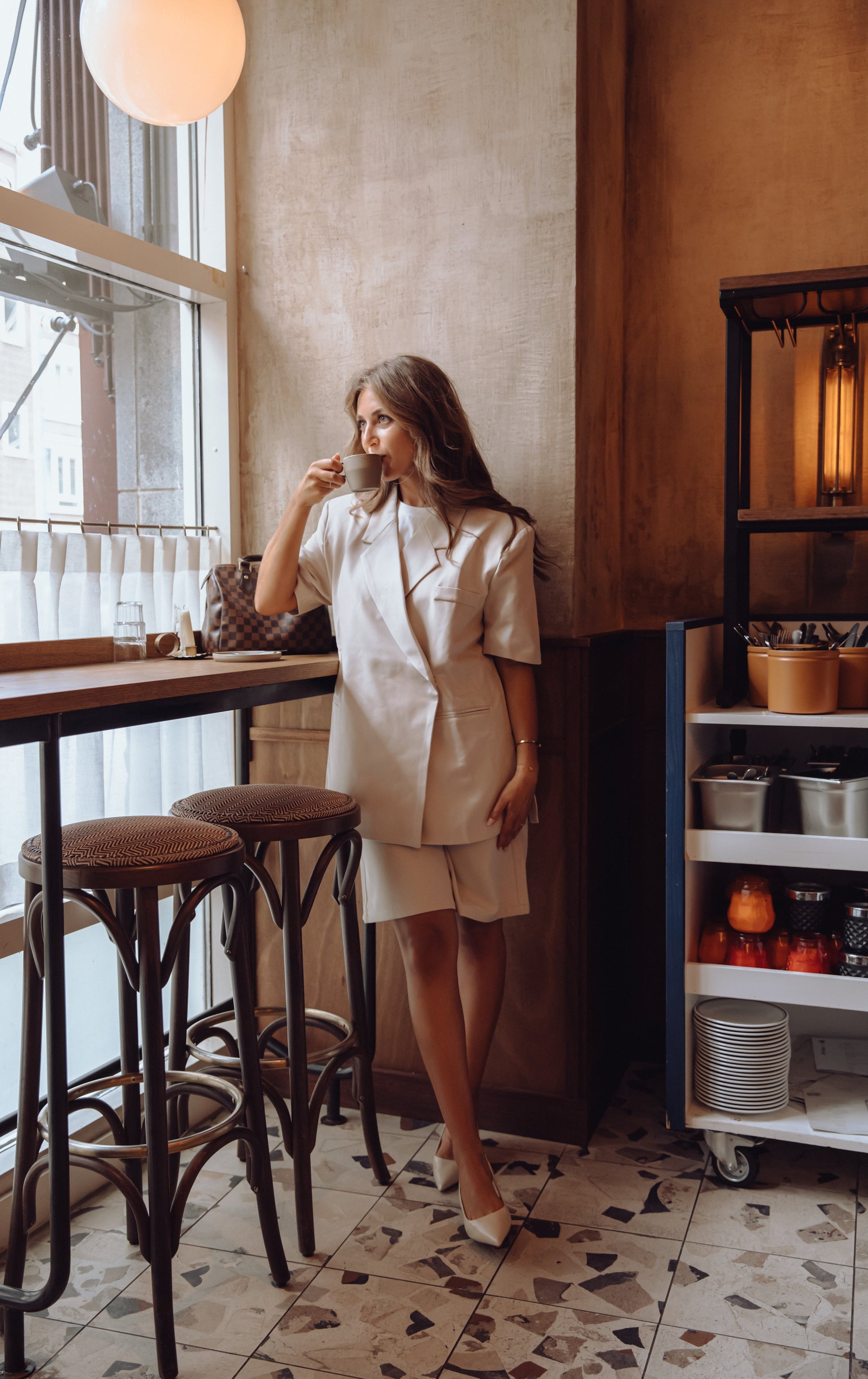 De Isabella Short in beige is een comfortabele wijde bermuda short met een schuifknoopje als sluiting en twee steekzakken. Combineer deze short met de Lauren Blazer voor een complete set!