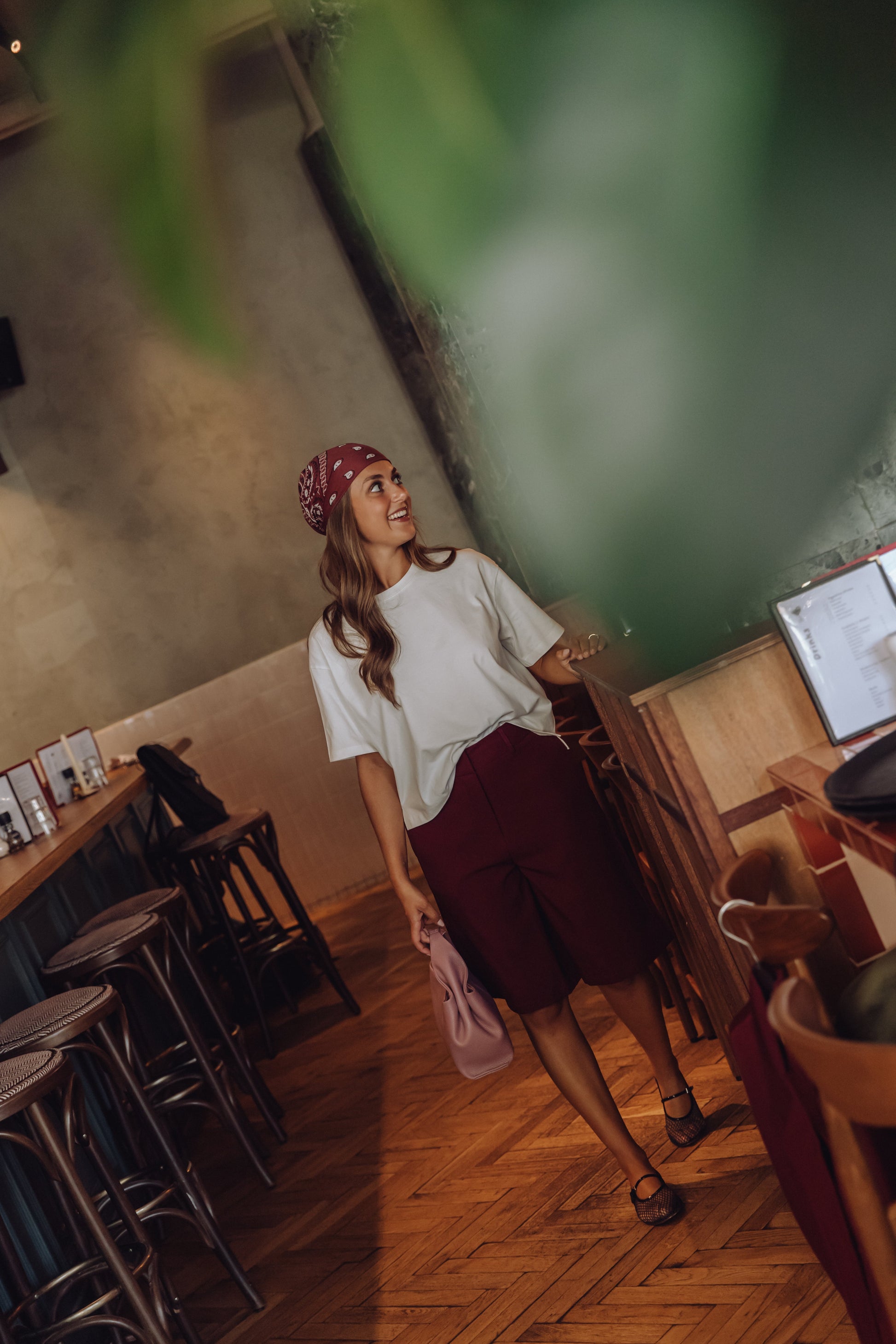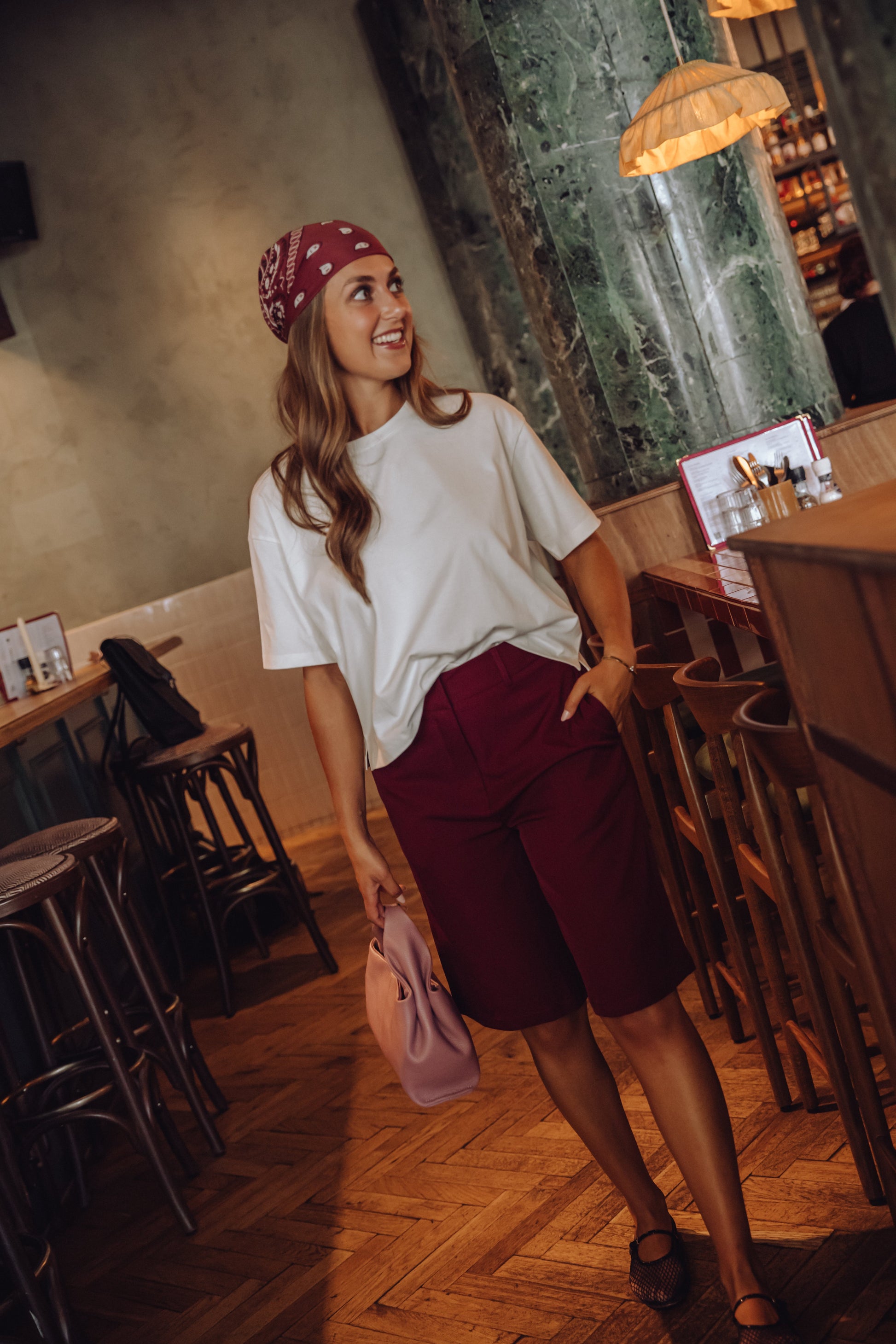 De Isabella Short in bordeaux is een comfortabele wijde bermuda short met een schuifknoopje als sluiting en twee steekzakken. Combineer deze short met de Lauren Blazer voor een complete set!