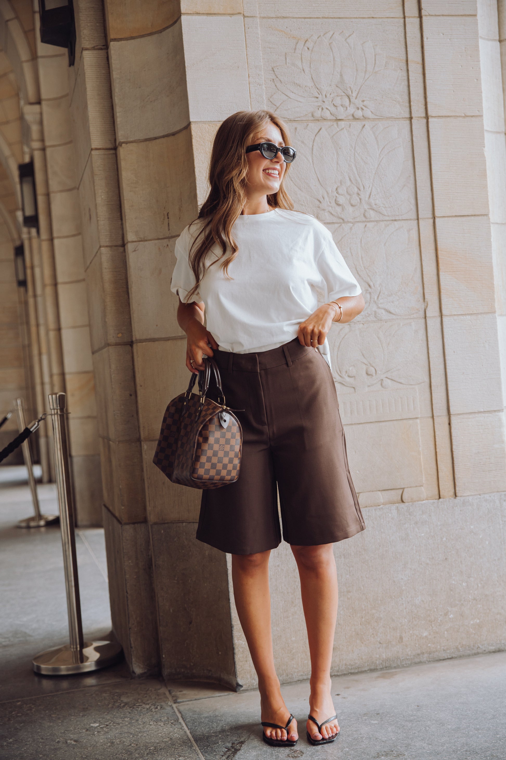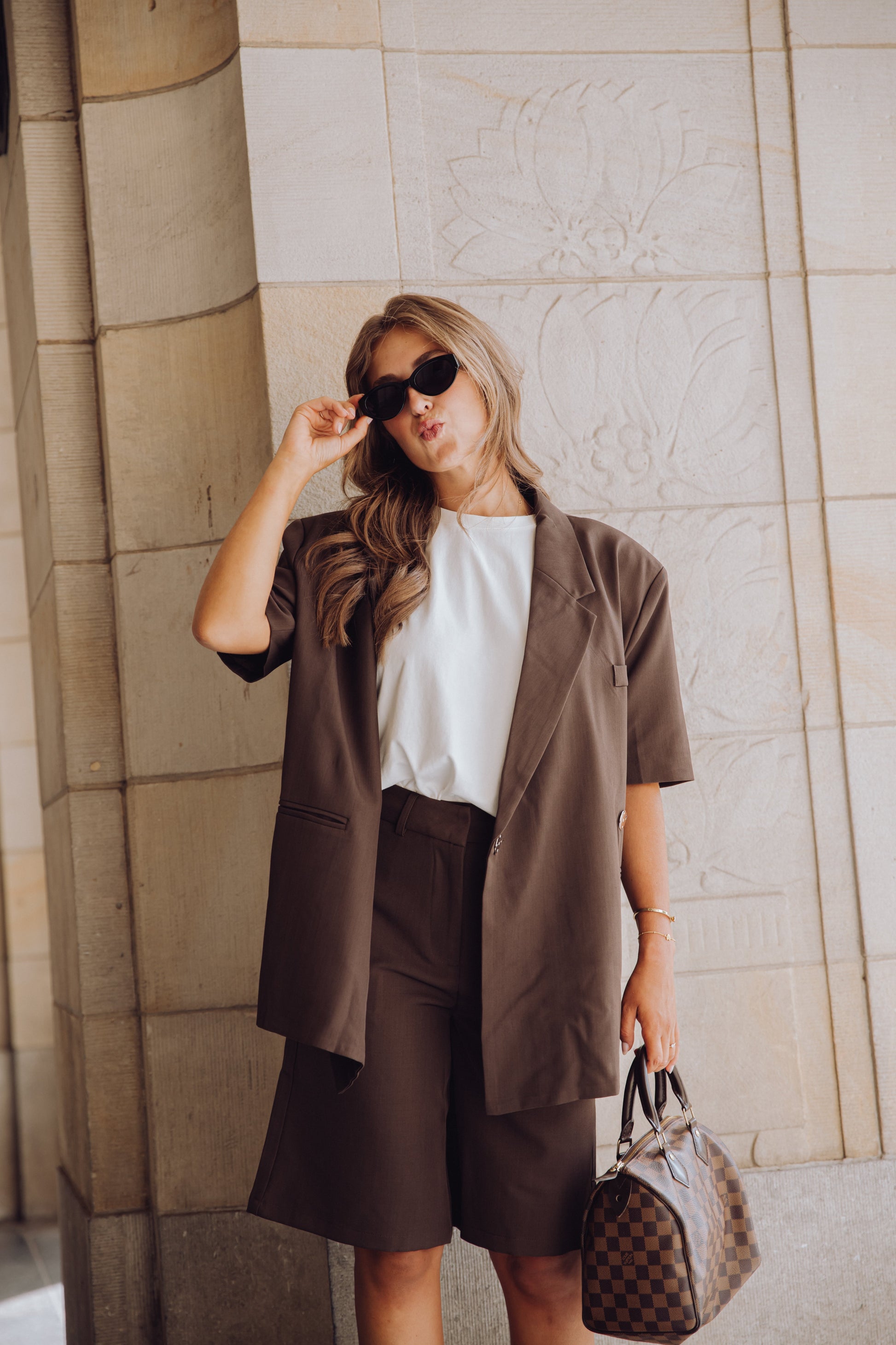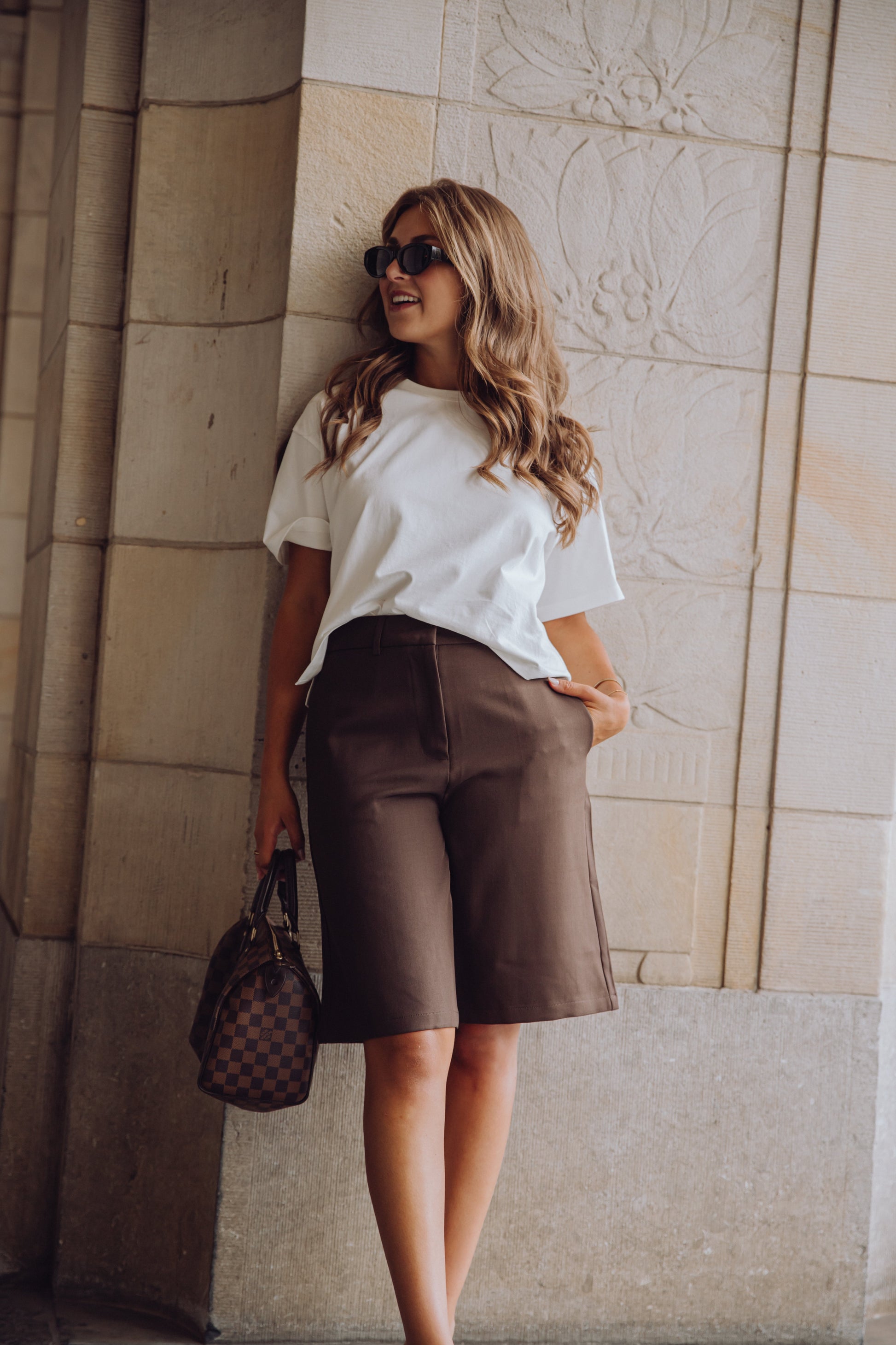 De Isabella Short in bruin is een comfortabele wijde bermuda short met een schuifknoopje als sluiting en twee steekzakken. Combineer deze short met de Lauren Blazer voor een complete set!