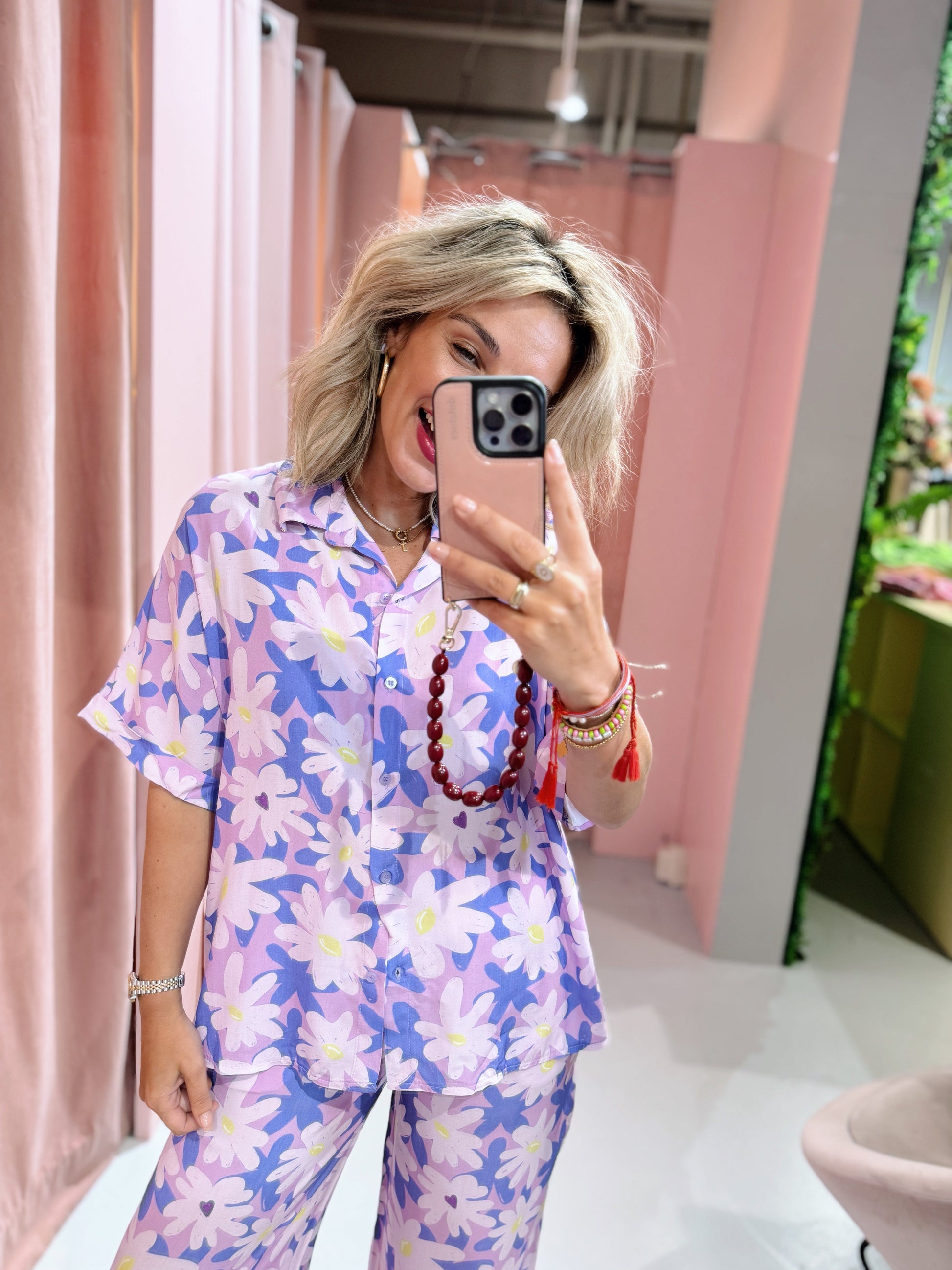 Onze bestseller, maar dan in een andere kleur! Op jullie verzoek hebben we deze fijne broek laten maken in nóg meer kleurtjes! De Isola Pants in lila is een vrolijke print broek met een high waist en een wide leg model. De broek is gemaakt van een luchtige stof, waardoor hij perfect is voor de warmere dagen! Daarnaast is de broek voorzien van twee steekzakken en een elastische tailleband, waardoor hij mooi aansluit. Draag de broek met de bijpassende Isola Blouse voor een complete set!