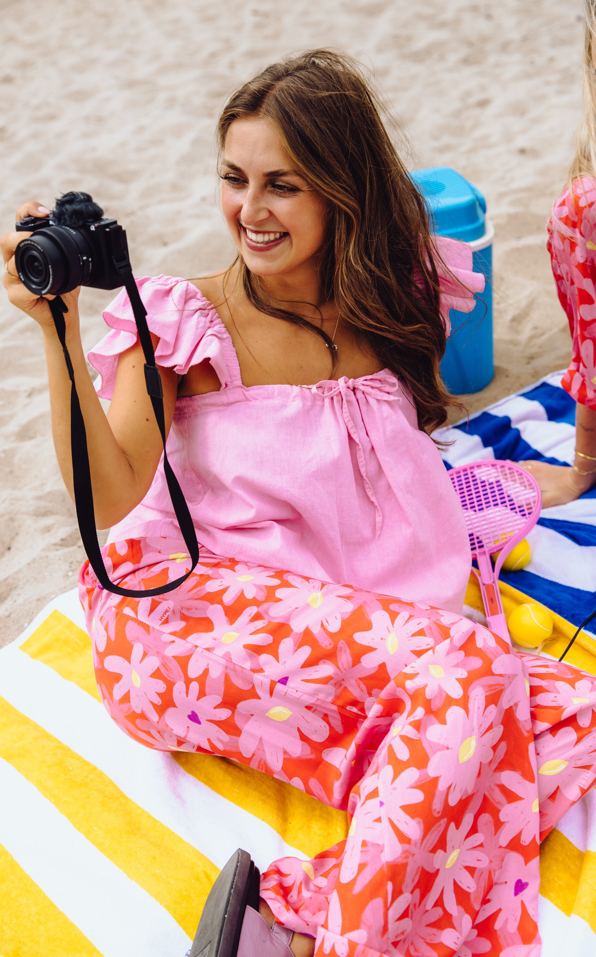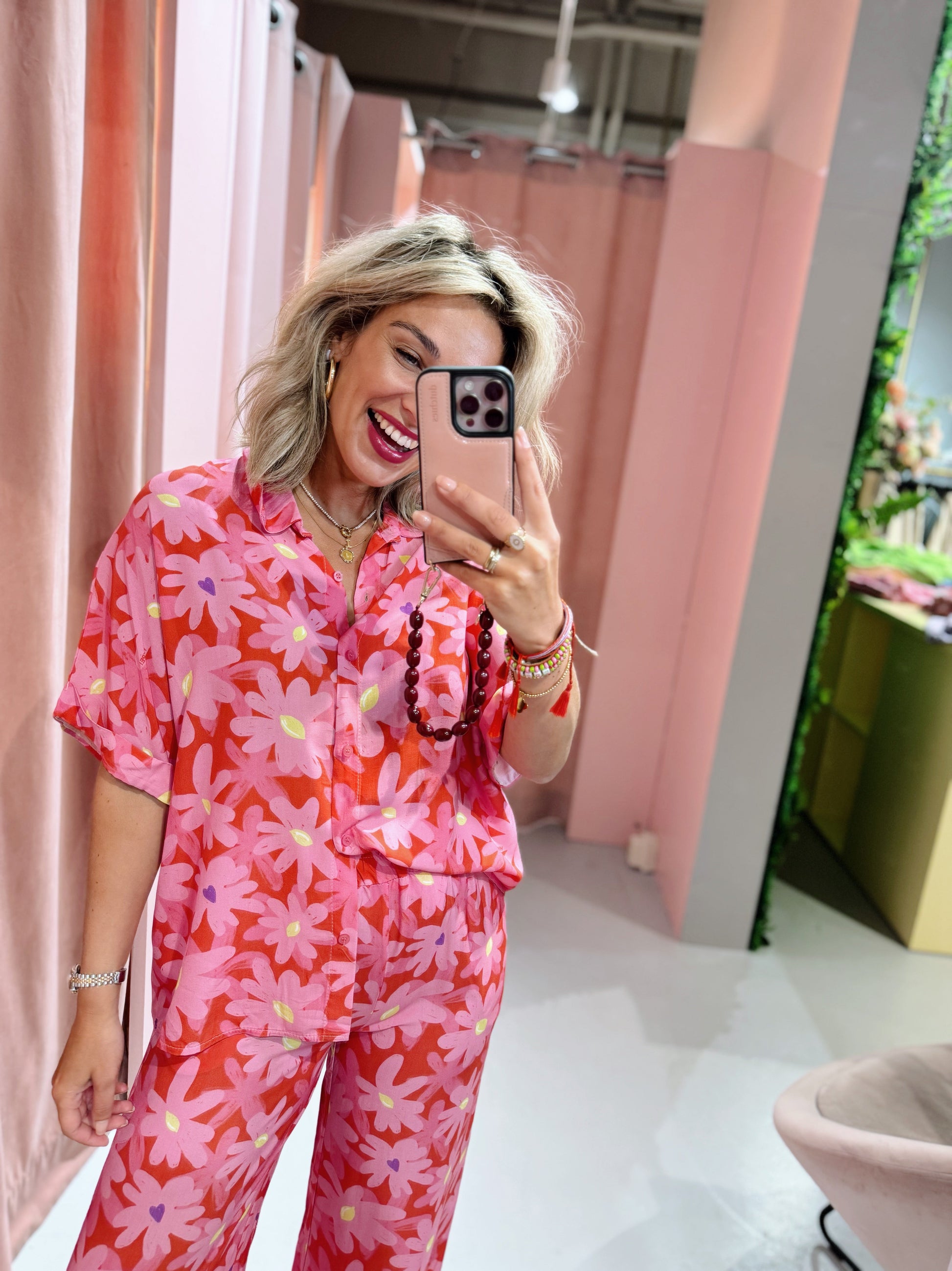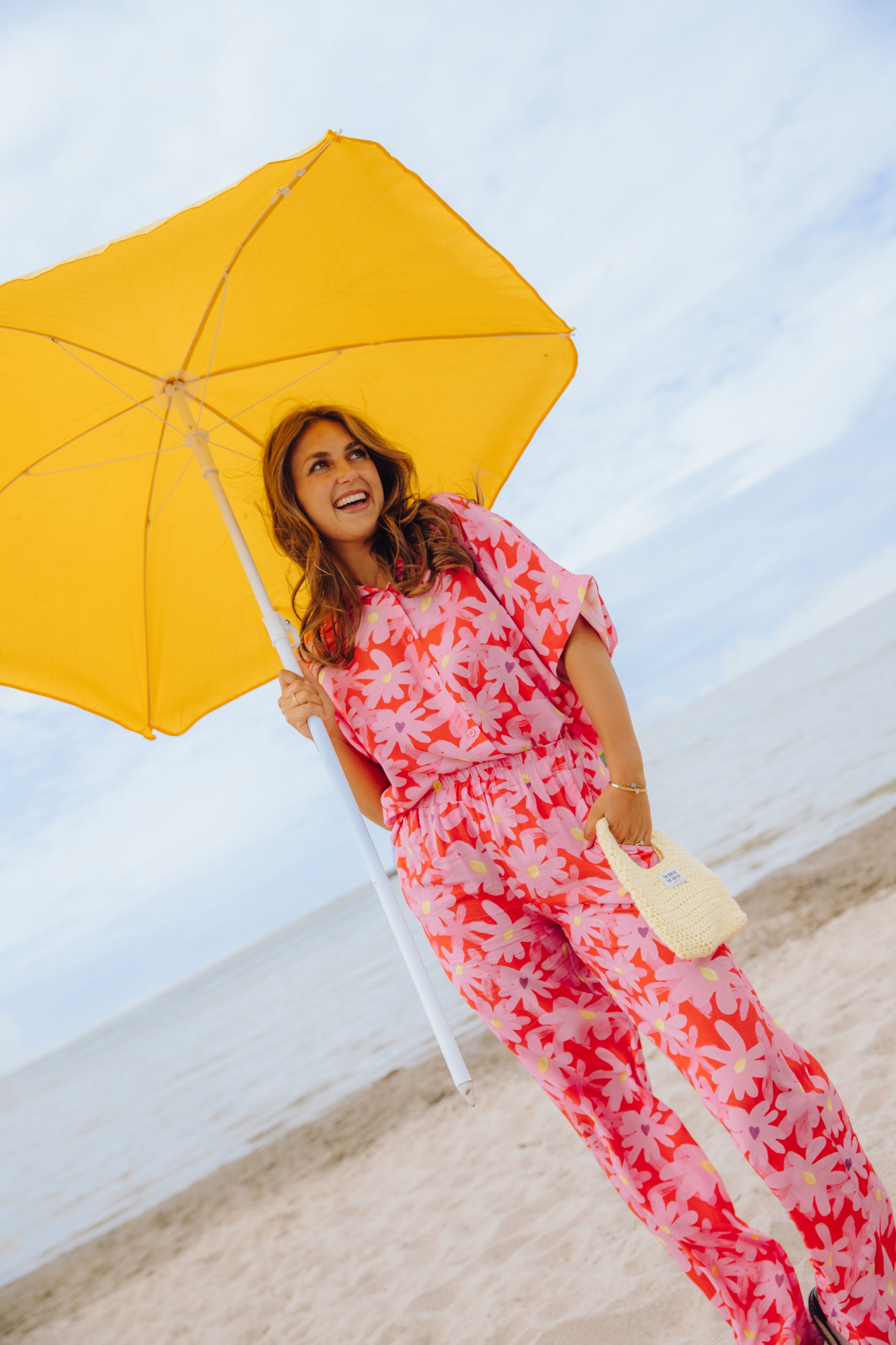 Onze bestseller, maar dan in een andere kleur! Op jullie verzoek hebben we deze fijne broek laten maken in nóg meer kleurtjes! De Isola Pants in rood is een vrolijke print broek met een high waist en een wide leg model. De broek is gemaakt van een luchtige stof, waardoor hij perfect is voor de warmere dagen! Daarnaast is de broek voorzien van twee steekzakken en een elastische tailleband, waardoor hij mooi aansluit. Draag de broek met de bijpassende Isola Blouse voor een complete set!