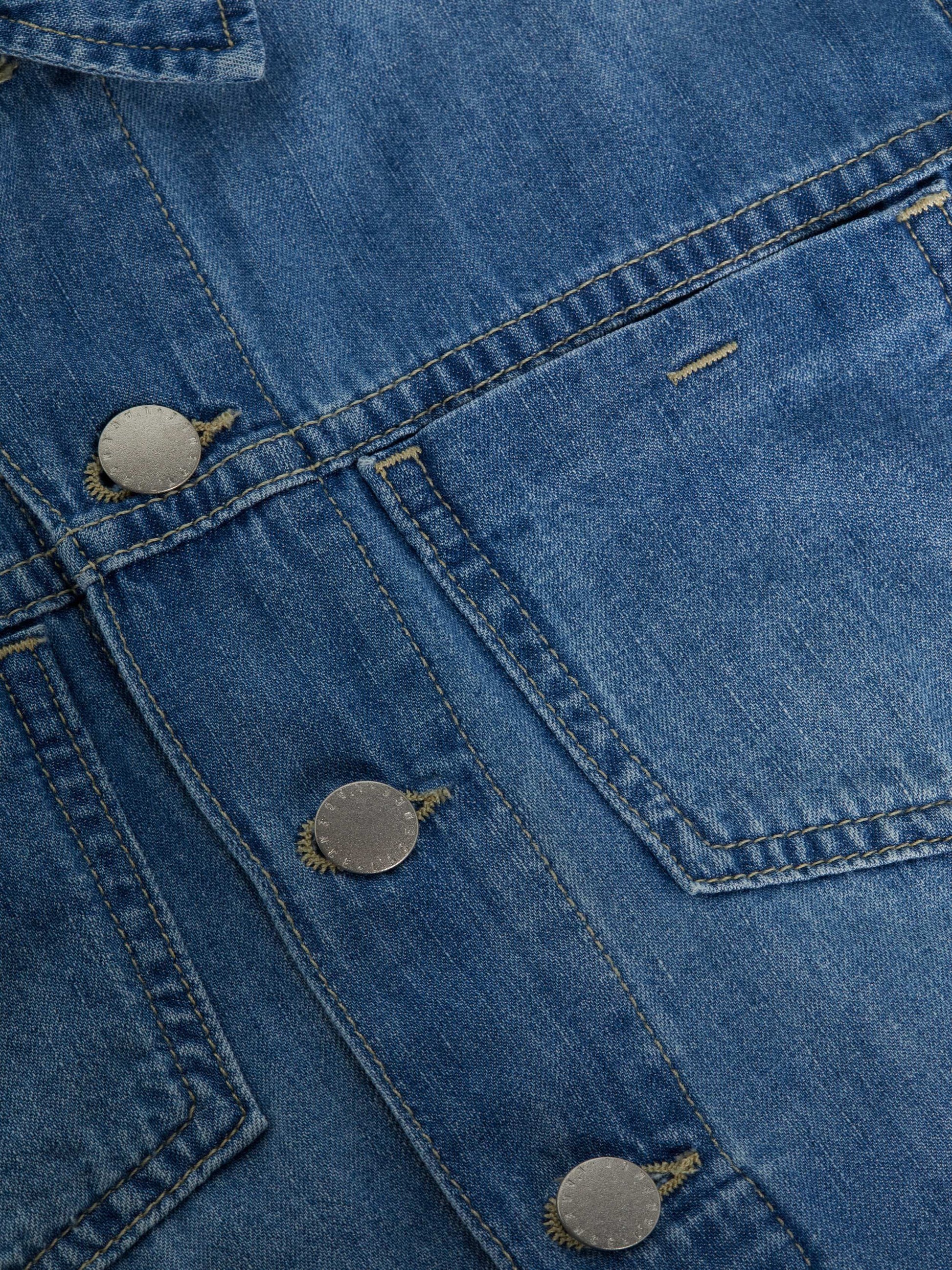 A flattering, feminine jacket, now updated in an aged indigo wash. This all-time bestseller is constructed with angled seams for waist definition.