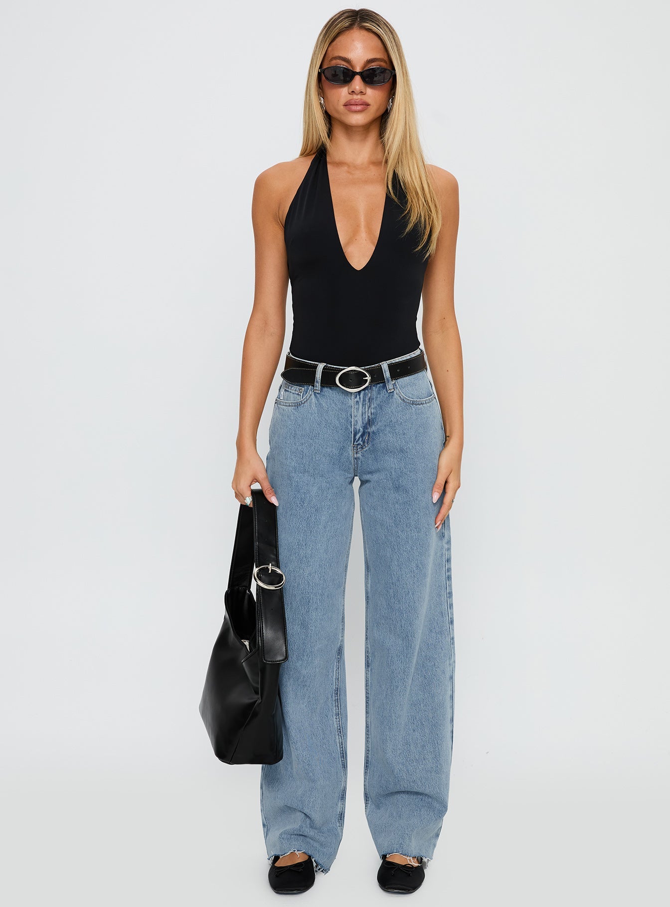 - Press clip buttons at base, cheeky bottoms, adjustable halter straps, low back