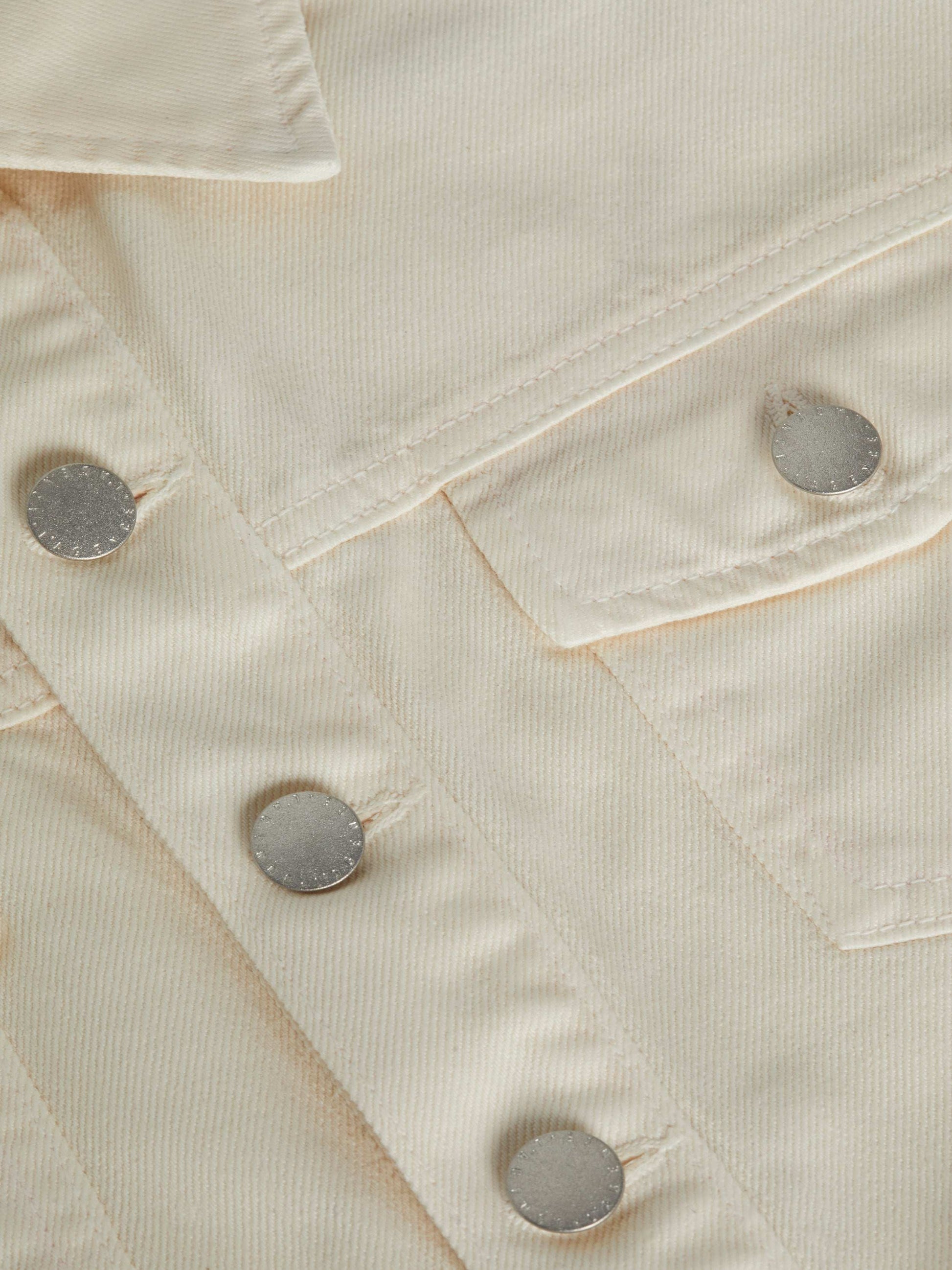 The iconic jean jacket reimagined in a cropped cut. Now in off-white coated denim.