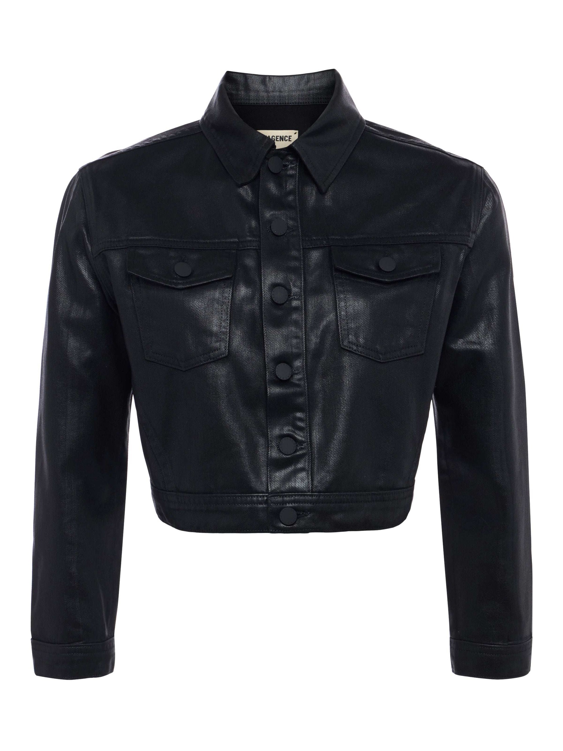 Our coated Koda jacket is a cool leather alternative featuring three-quarter sleeves and a cropped silhouette.