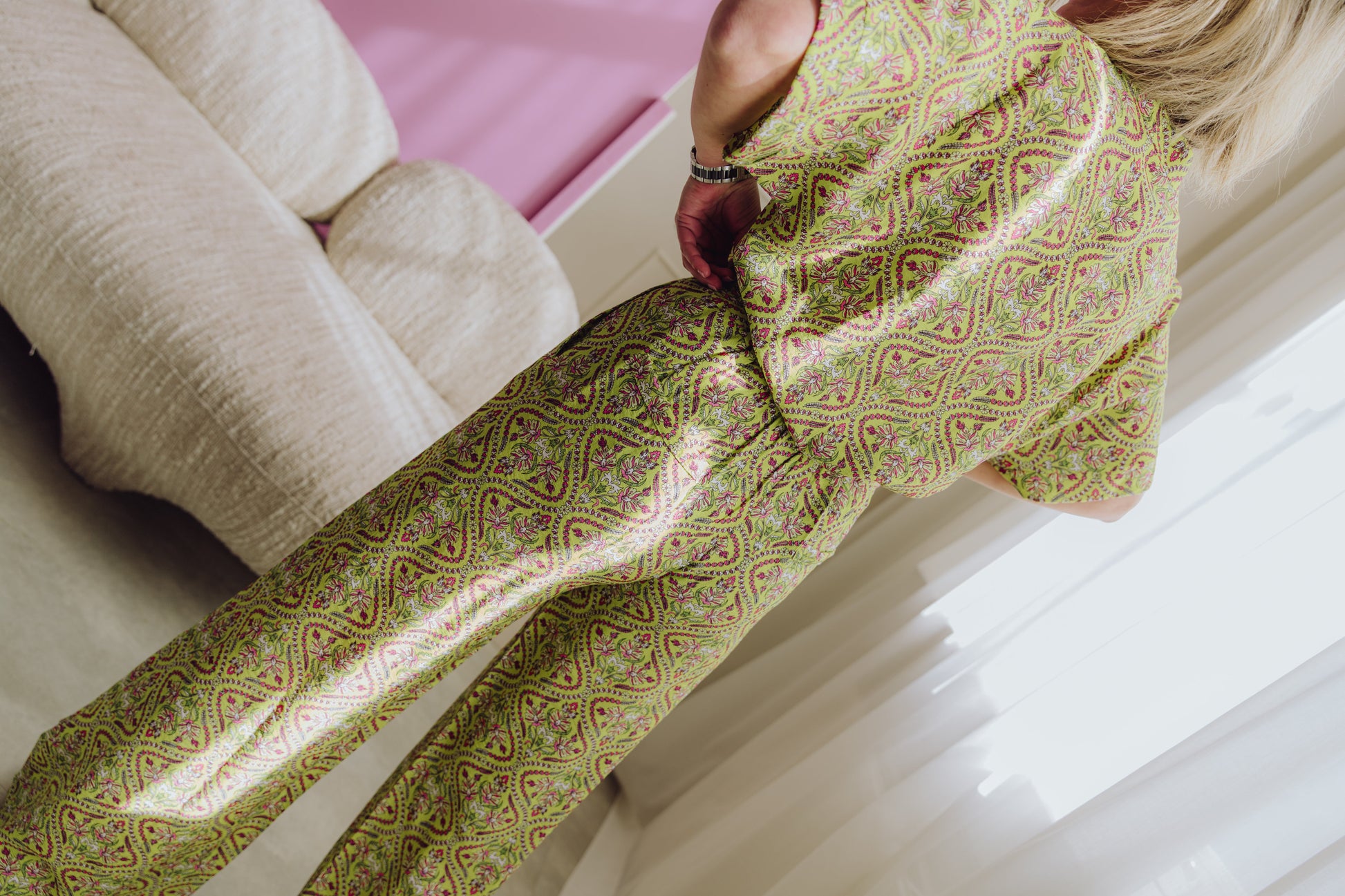 De Lily Pants in lime is een luchtige broek met een wide leg pasvorm. De broek heeft een hoge taille en aan de achterkant een elastische band, waardoor hij erg comfortabel draagt. Daarnaast is de broek voorzien van twee steekzakken en twee nepzakken op de achterkant. Combineer de Lily Pants met de Lily Blouse voor een complete set.