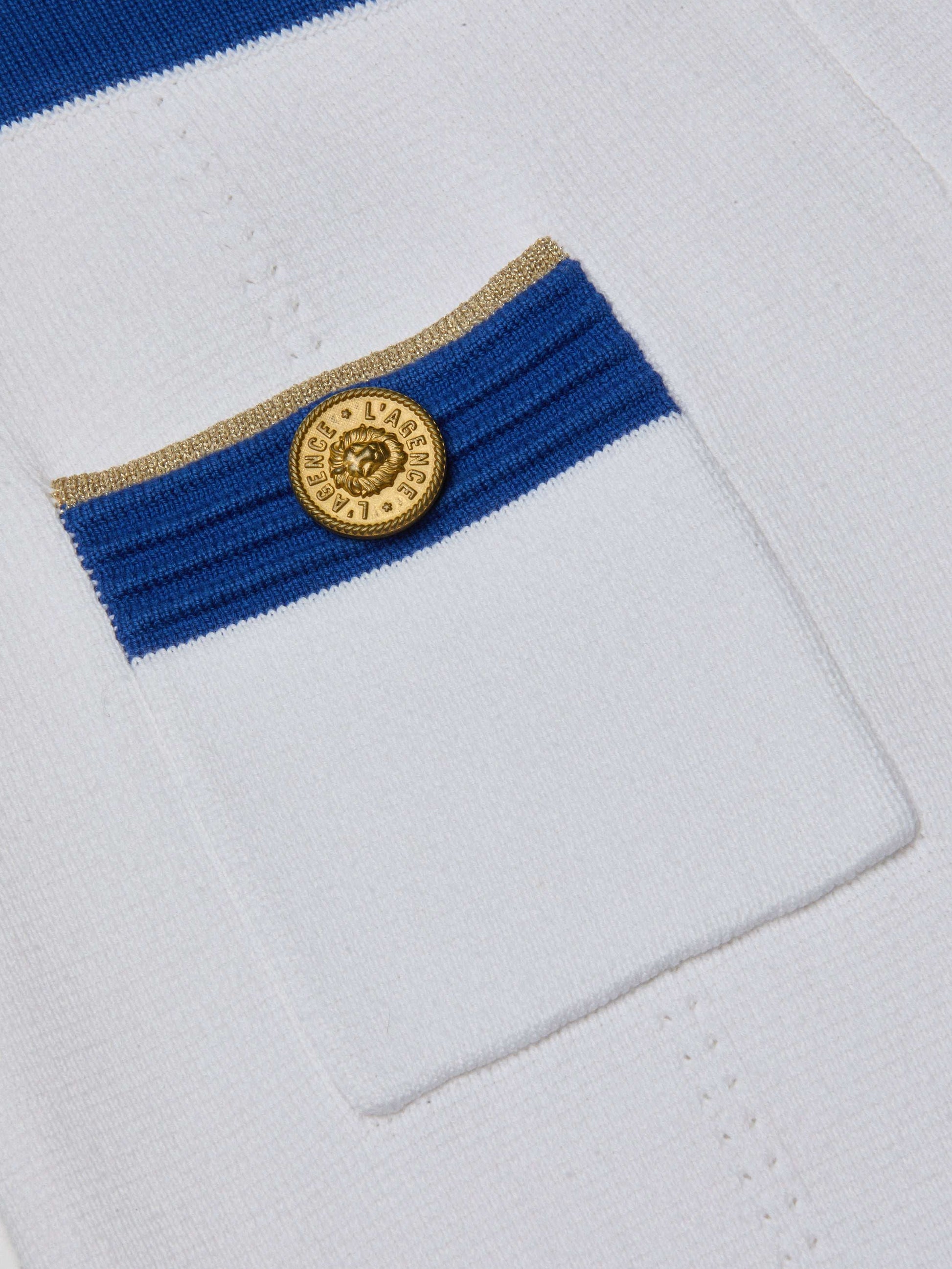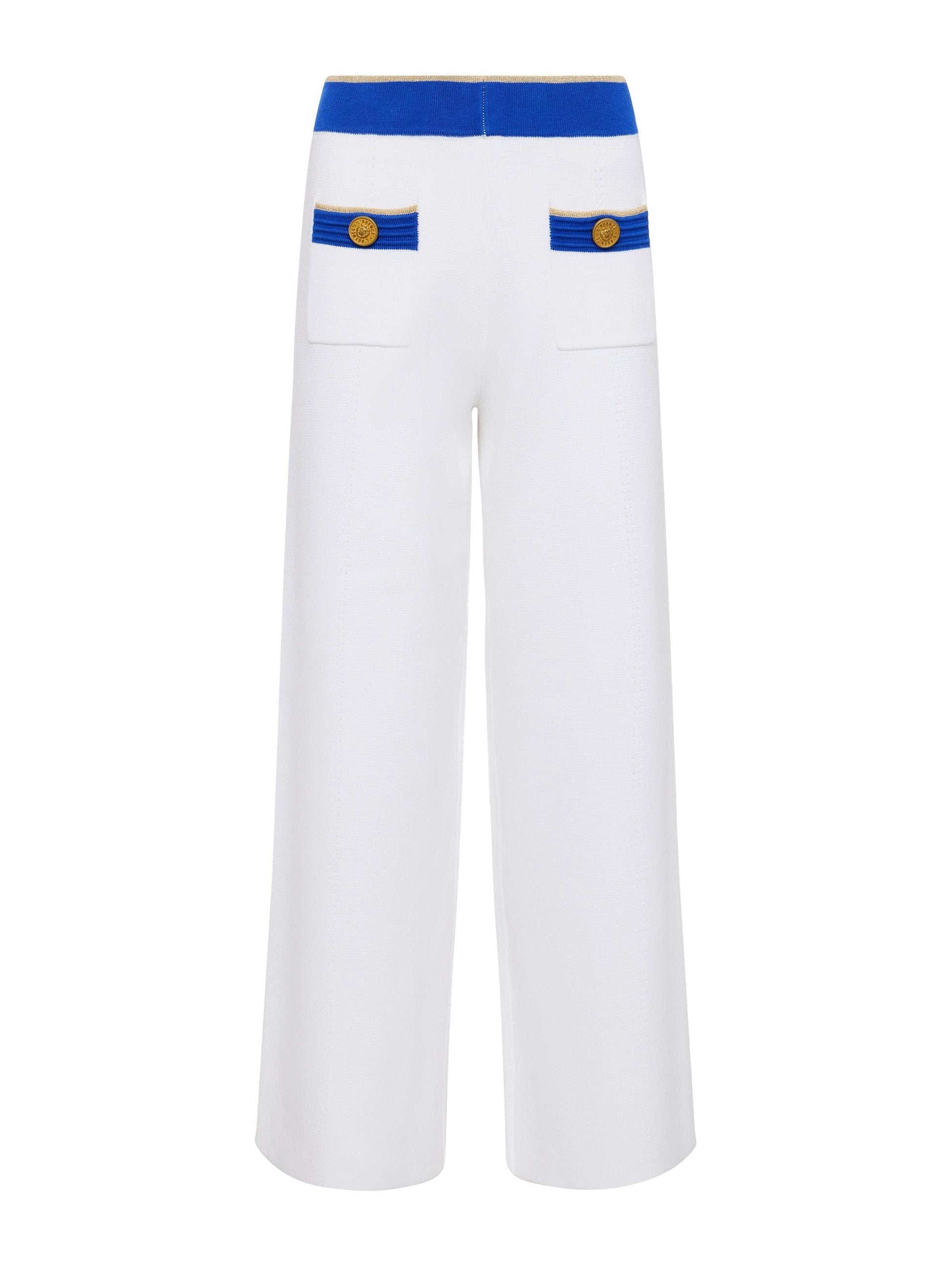 Airport to office to evening, the Madrid offers instant polish without compromising on comfort. Embrace the power of the knit pant, now in white with navy accents.