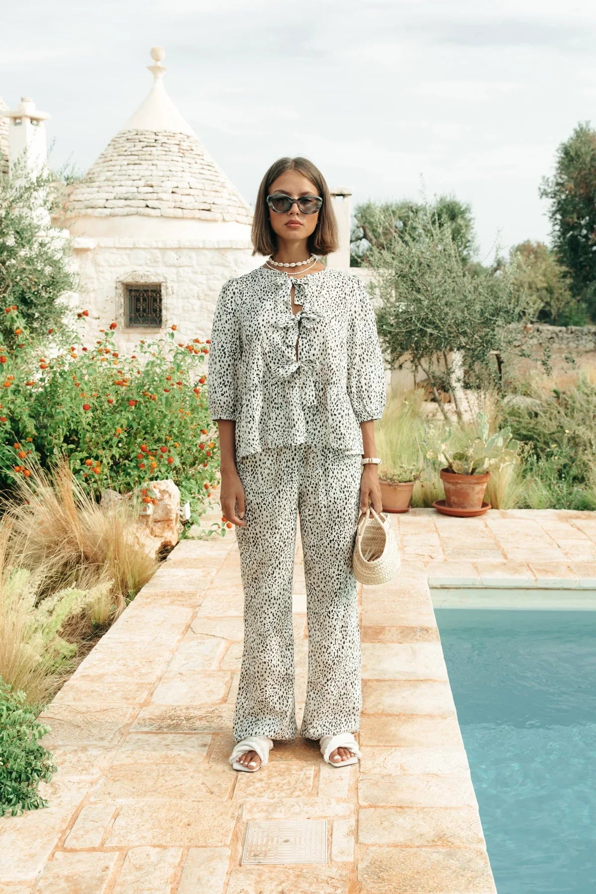 De Melody Straight Pants in beige is een statement broek met een high waist en een straight leg model. De broek is gemaakt van een luchtige stof, waardoor hij perfect is voor de warmere dagen! Daarnaast is de broek voorzien van twee steekzakken. Combineer deze broek met de Lina Cheetah Bow Top voor een complete set!