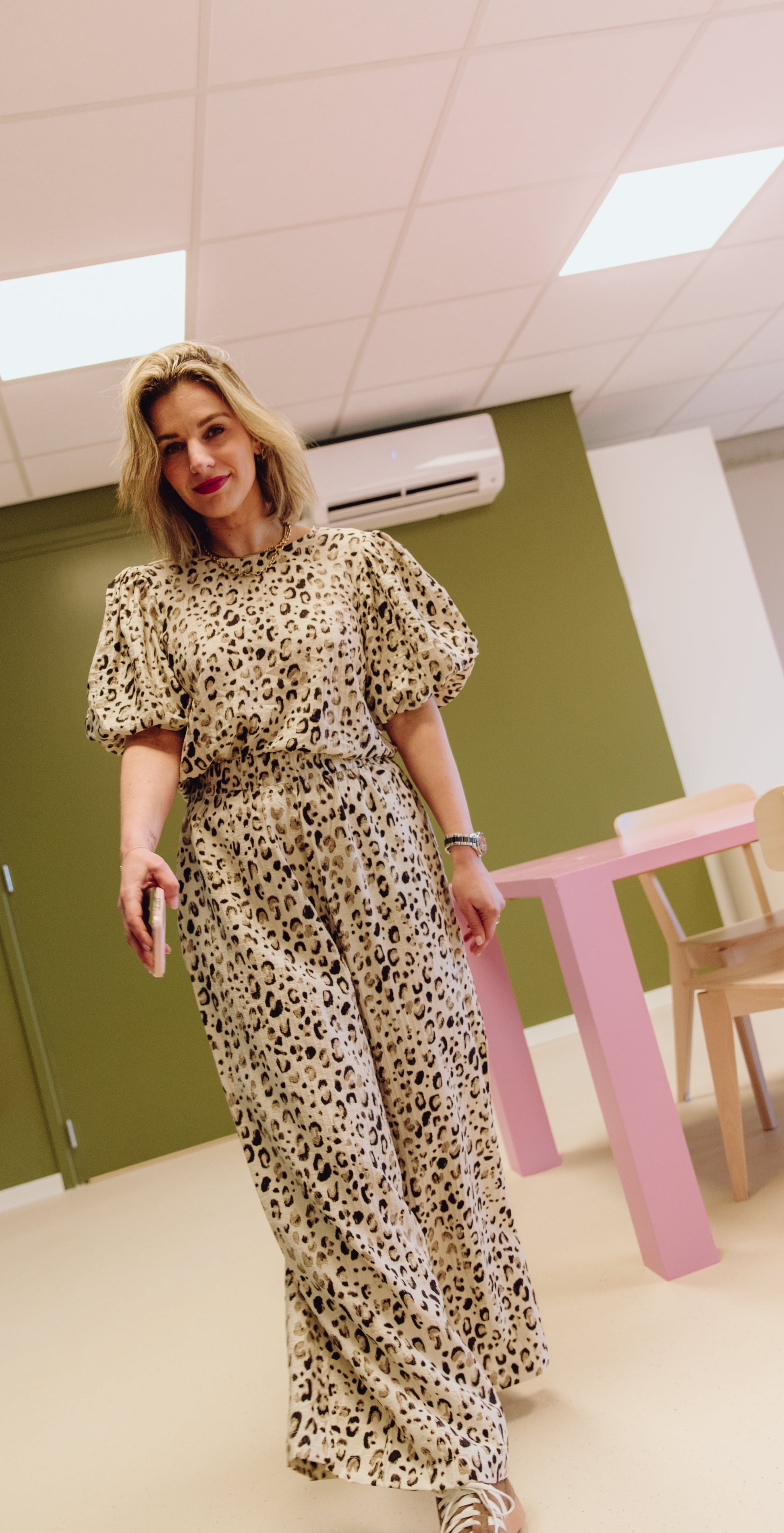 MSCHAlyona Vlora HW Pants AOP - Oatmeal Leo
