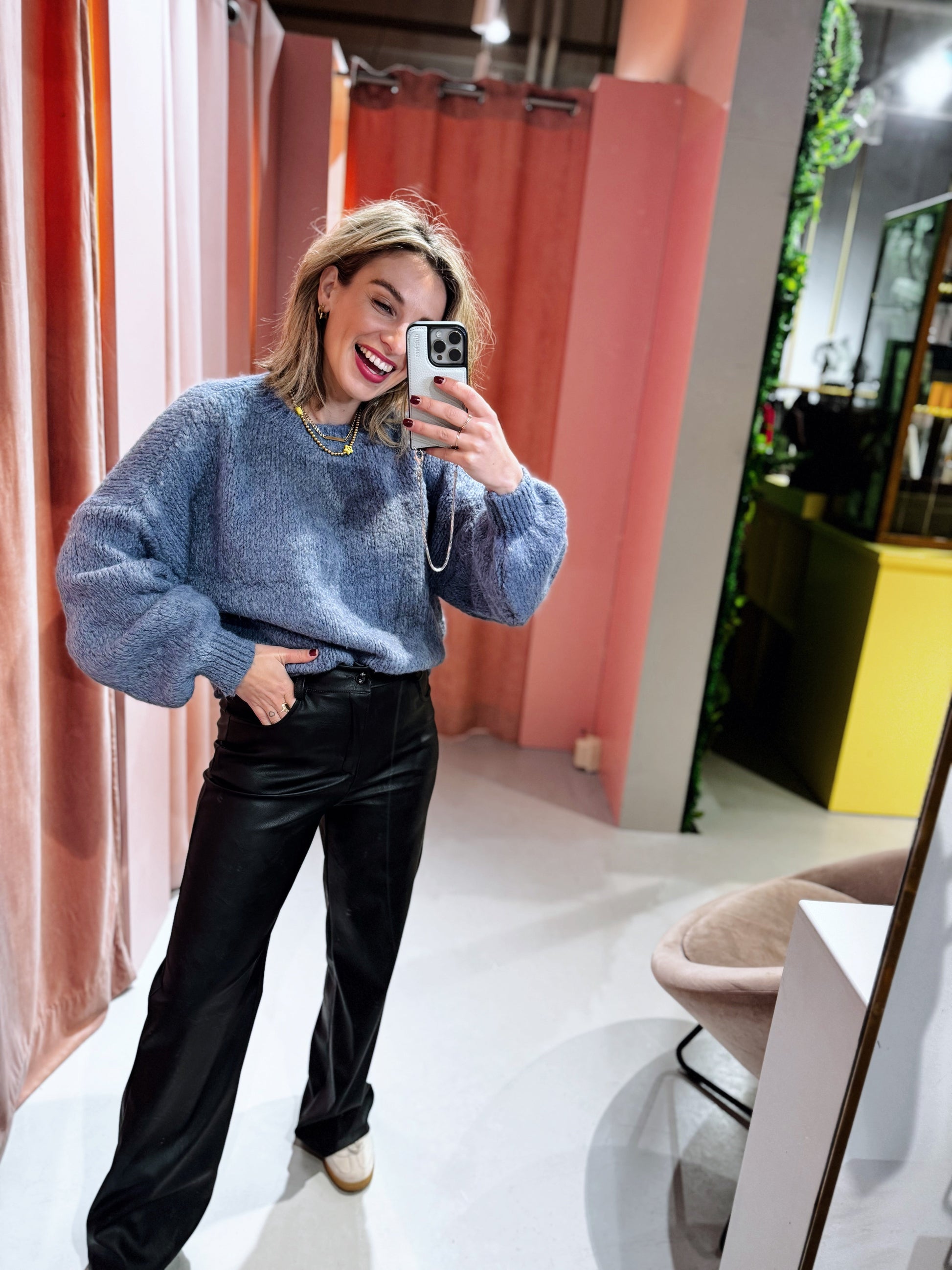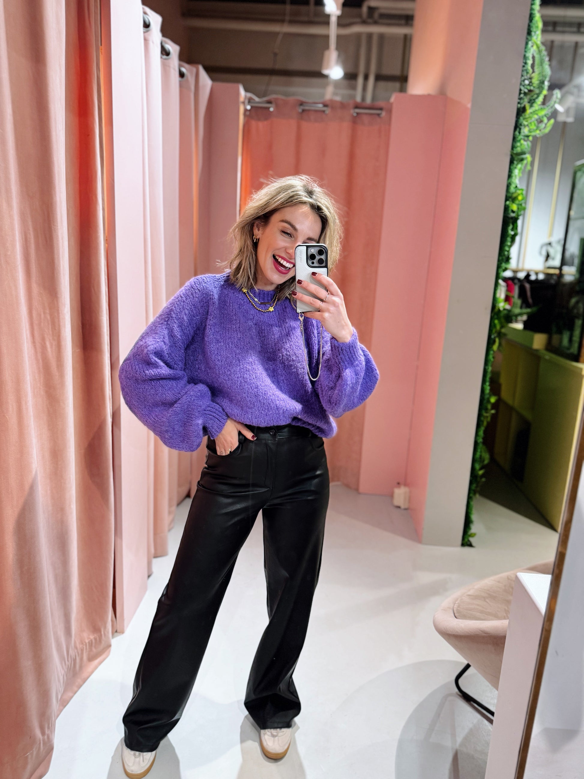 De Nela PU Pants zijn de perfecte mix van stijl en comfort. Met een high waist en straight leg bieden ze een flattering fit en een stoere uitstraling. Het matte leer geeft een edgy look, terwijl de broek iets kleiner valt voor een strakkere pasvorm. Ideaal voor een trendy, moderne look!