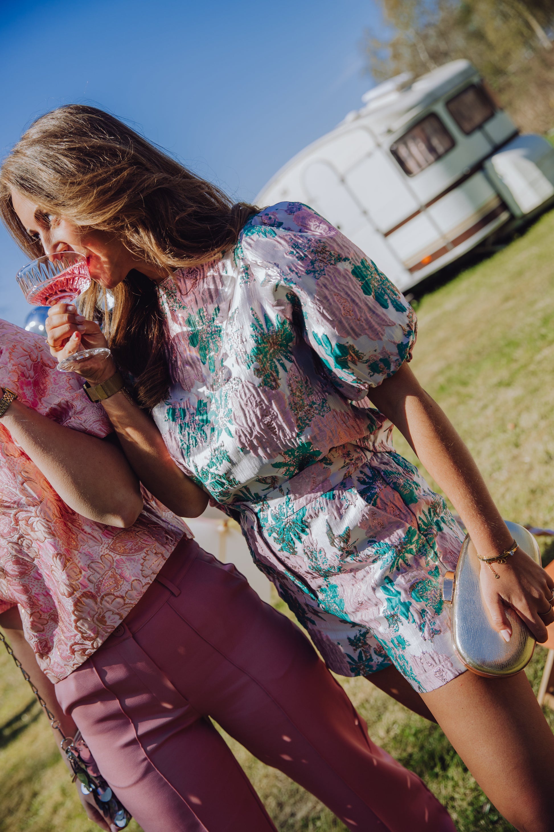 De Nessa Short is gemaakt van een metallic jacquard stof, waardoor hij een échte eyecatcher is! De short is voorzien van twee steekzakken en twee nep zakjes op de achterkant. Doordat de short een elastische taille heeft aan de achterkant, sluit het broekje erg mooi aan. Bovendien is de short gemakkelijk te sluiten door middel van een knoopsluiting. Combineer de Nessa Short met de Nessa Blouse voor een complete set!