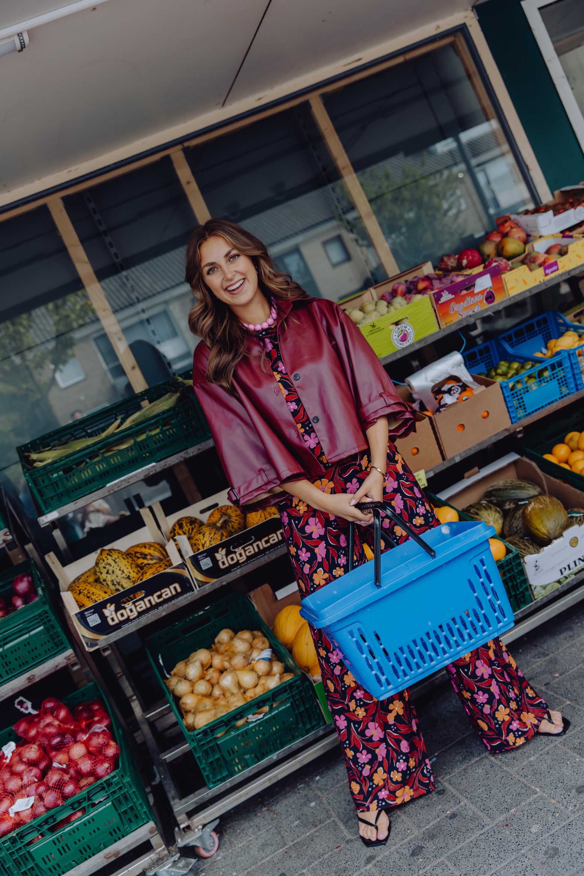 De Nola Pants in bordeaux is gemaakt van een luchtige stof, hierdoor is hij perfect voor warme dagen. De broek heeft een wide leg model en is voorzien van een elastische tailleband aan de achterkant en twee steekzakken. Bovendien is de broek voorzien van een bloemenprint. Combineer deze broek met de Nola Blouse voor een complete set!