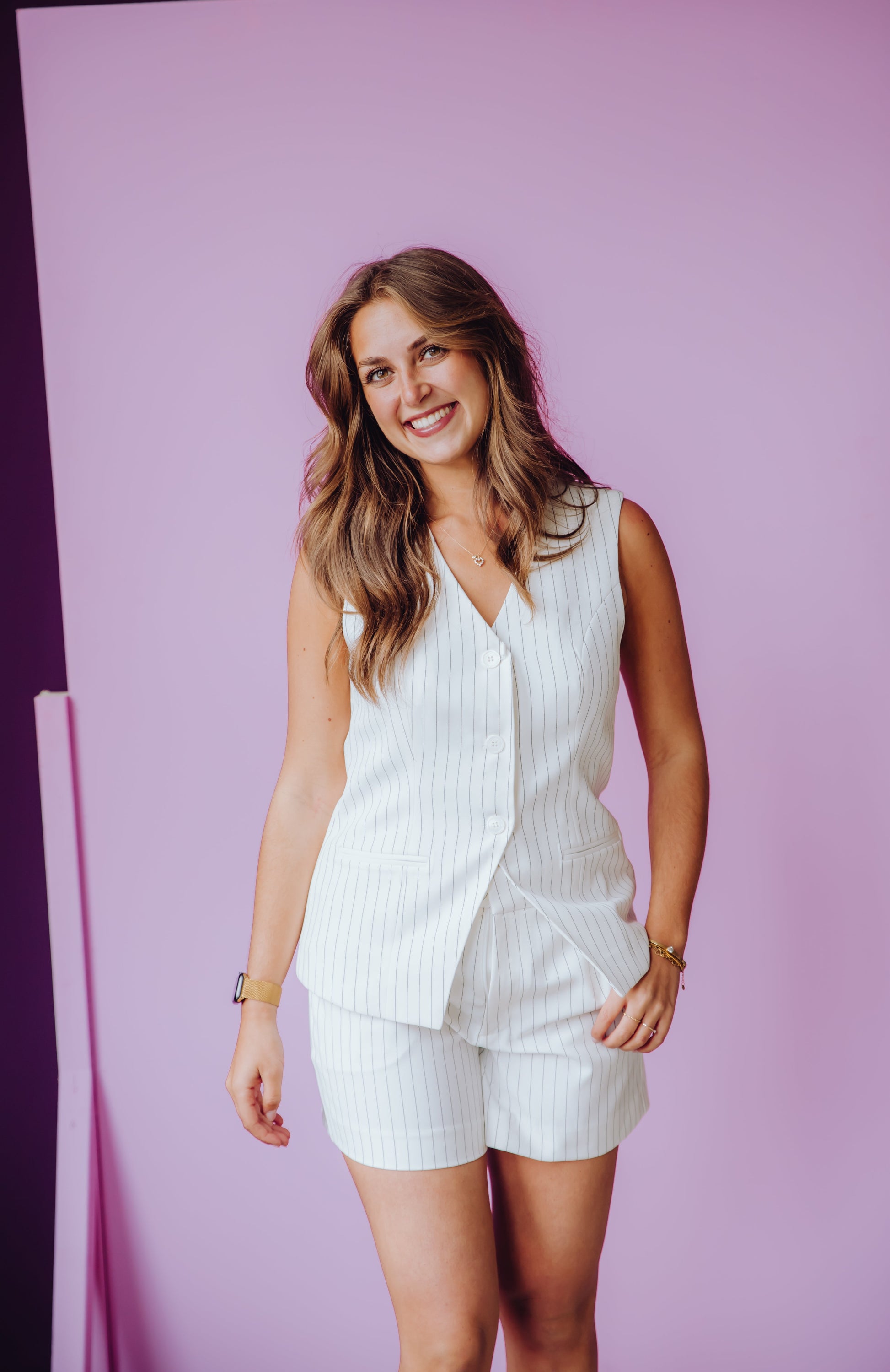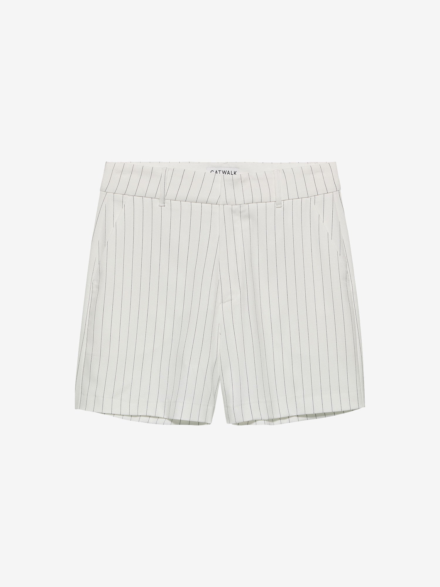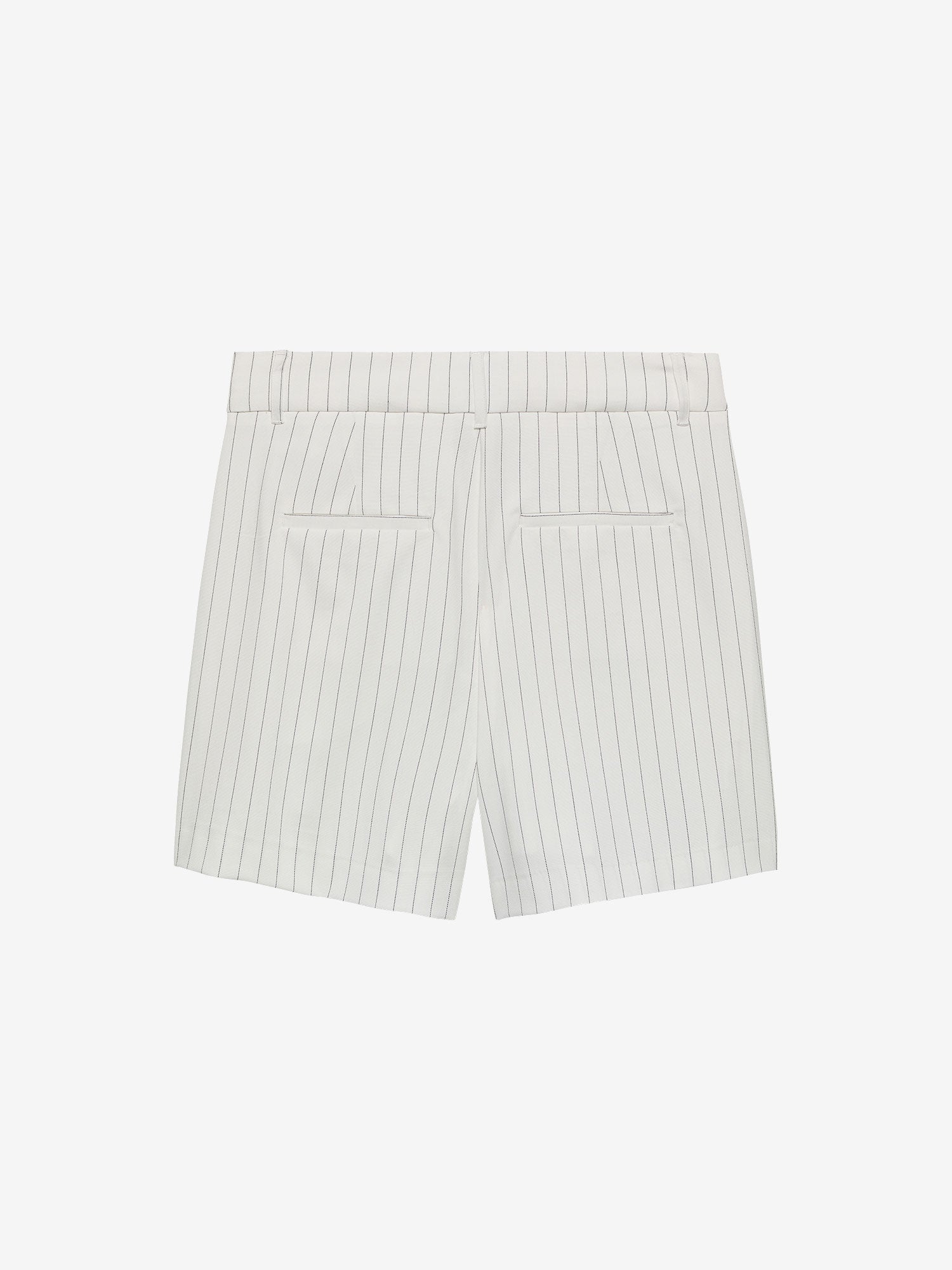 Deze korte broek is gemaakt van een lichtgewicht zomerse stof met een pinstripe. De broek heeft een regular fit en is afgewerkt met twee steekzakken aan de voorkant en nep zakken aan de achterkant. De haak-, knoop- en ritssluiting zorgen voor een nette en stevige sluiting. Een tijdloos model dat makkelijk te combineren is en is perfect voor warme dagen waarop je iets netters zoekt zonder dat het te strak of te formeel voelt.