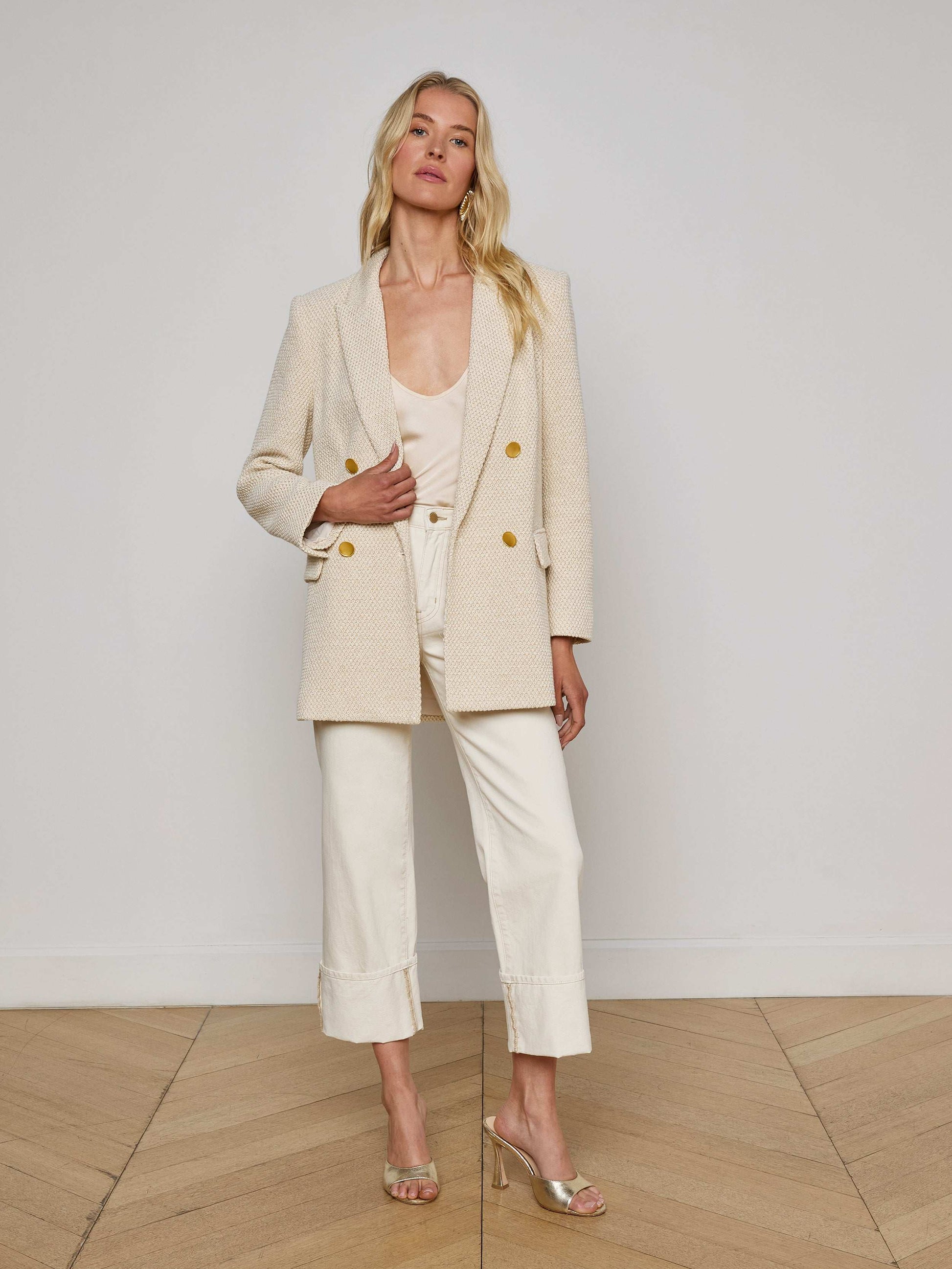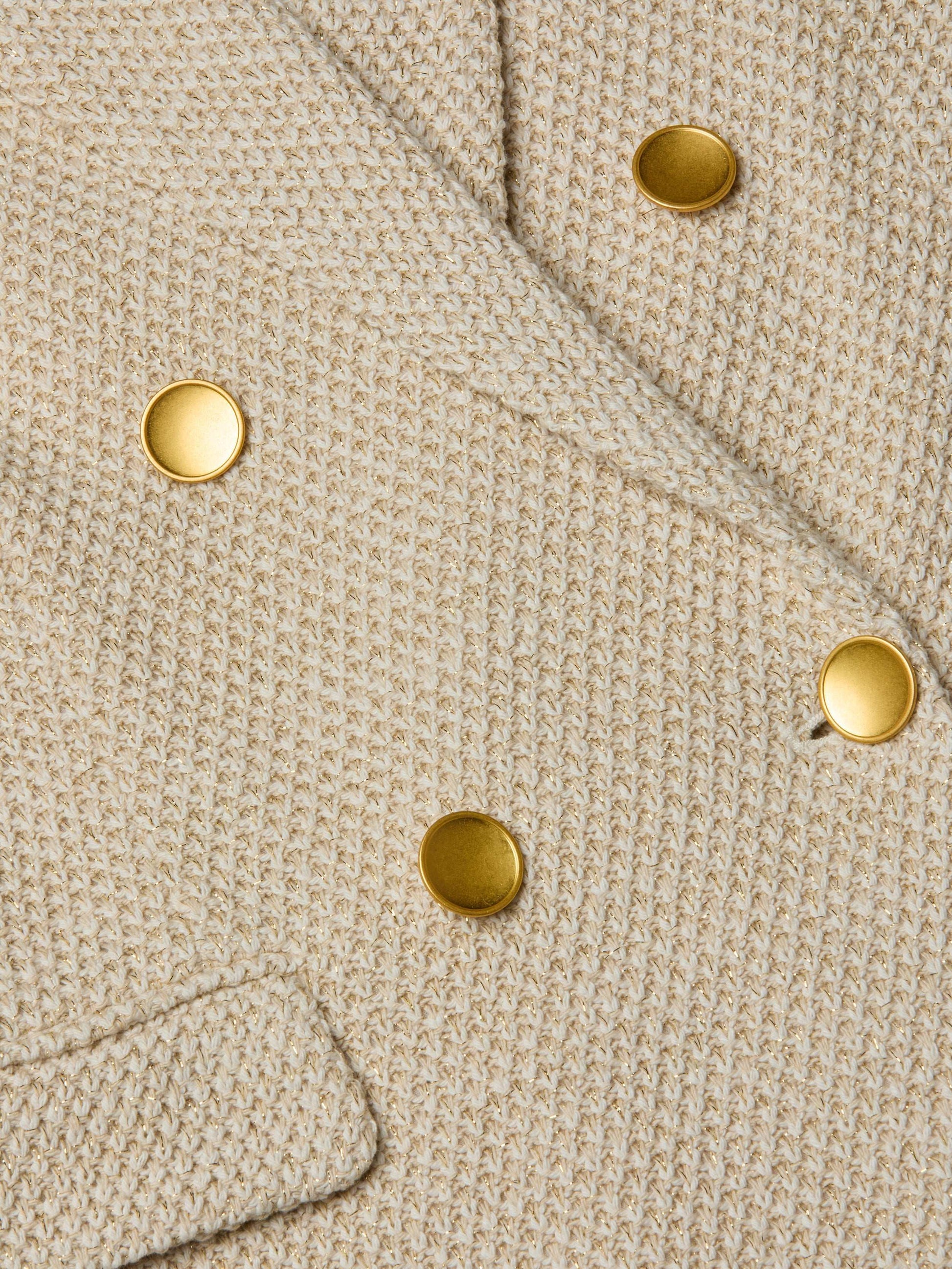 Fresh, polished, and endlessly wearable. The Riva blazer features a modern oversized fit crafted from a luxurious knit infused with lurex for a subtle sparkle. Now in a timeless neutral.