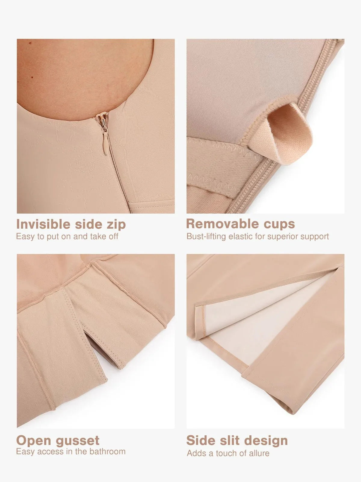 • All-in-One Design: Combines outerwear, shapewear, and built-in bra and panty for ultimate convenience and support.