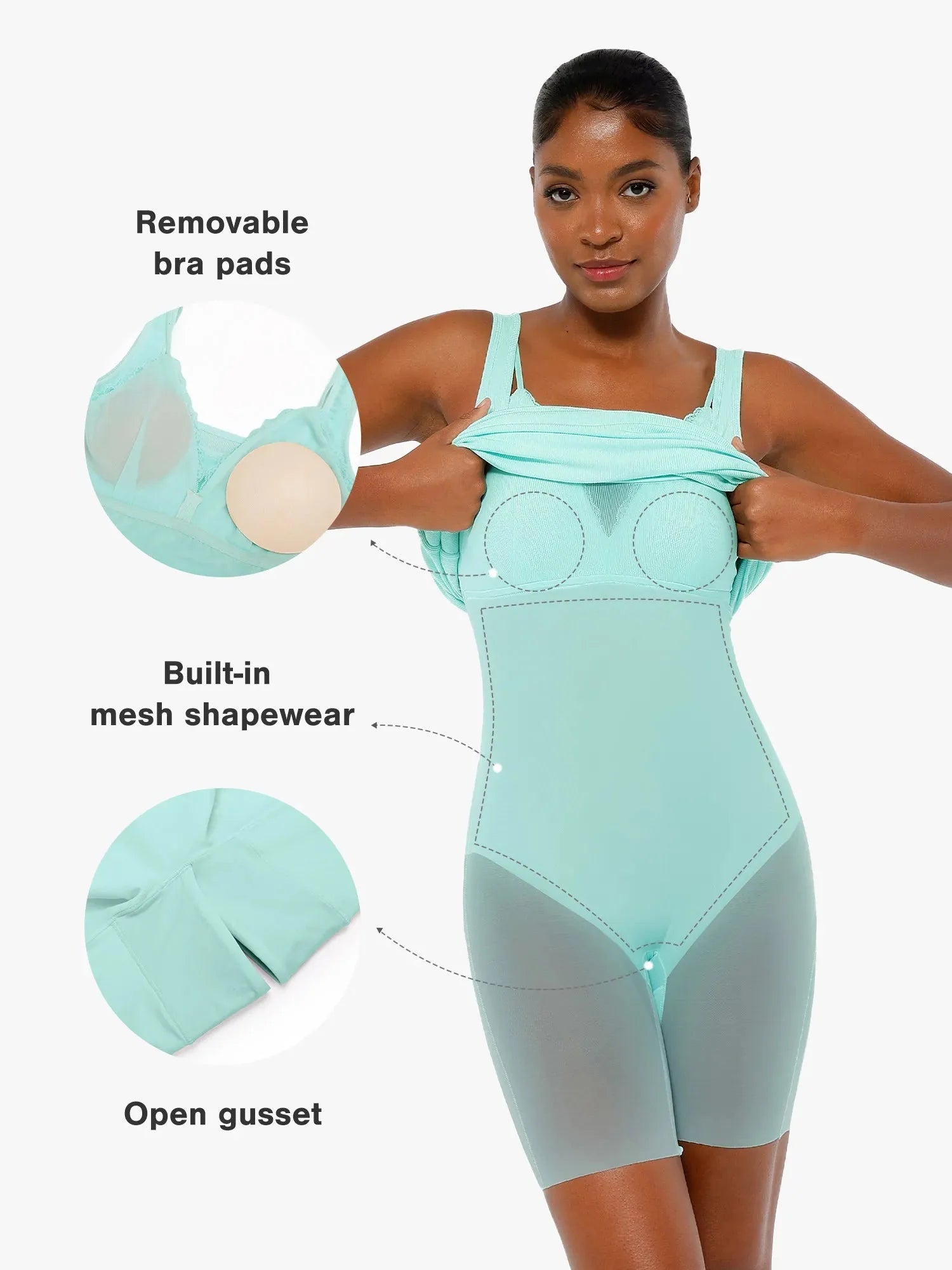 • All-in-One Design: Combines outer layer, built-in bra, and panties into one seamless piece.
