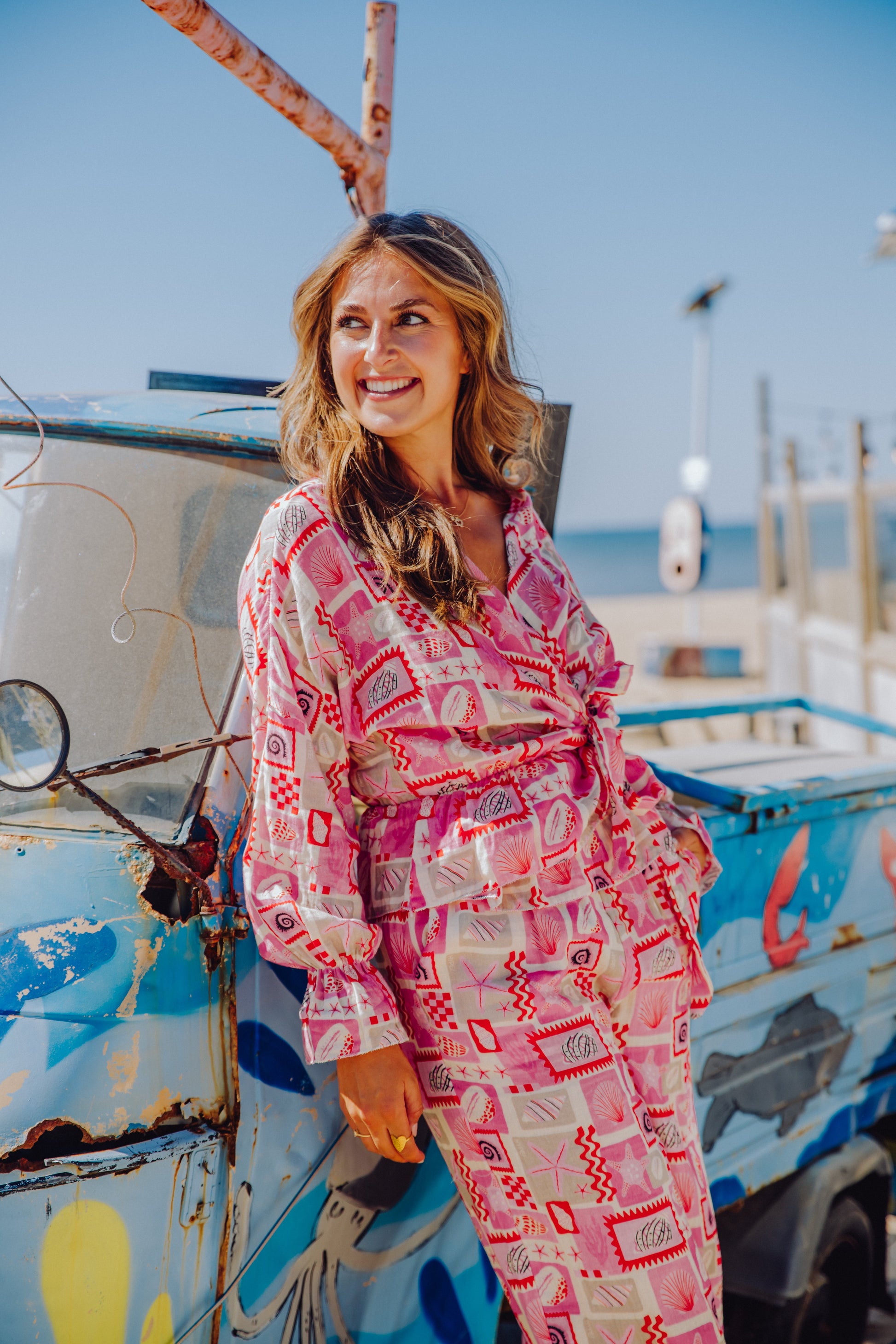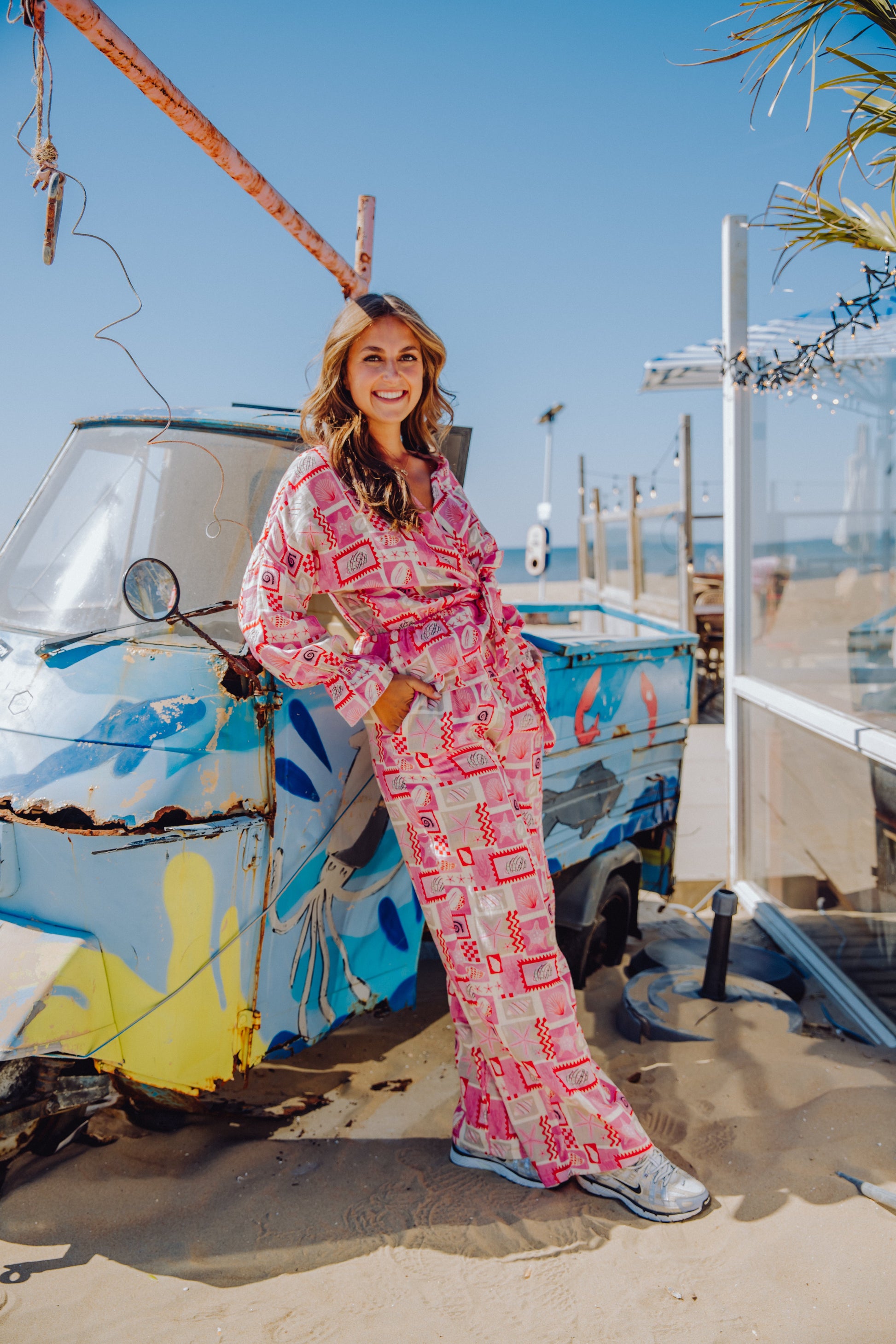 Onze bestseller, maar dan helemaal in ons eigen design! De HYPE Signature Pants in roze is gemaakt van een zachte stof, hierdoor draagt hij heerlijk comfortabel en is hij perfect voor warme dagen. De broek heeft een wide leg model en is voorzien van een elastische tailleband en twee steekzakken. Bovendien is de broek voorzien van ons eigen HYPE design. Combineer deze broek met de Signature Blouse voor een complete set!