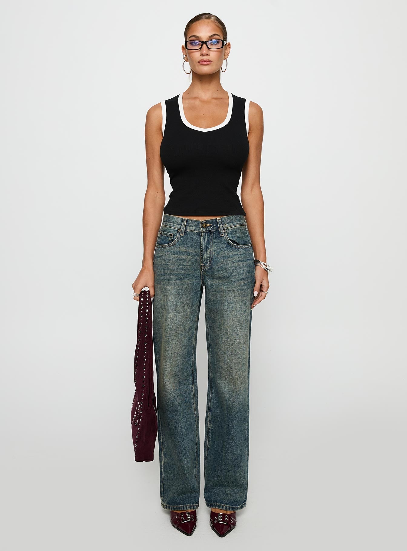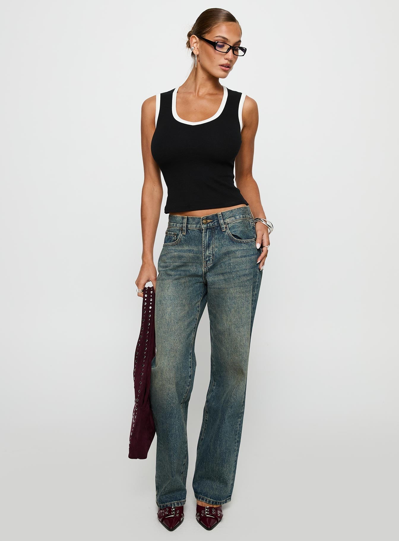 - Contrast stitching hem detail, scooped neckline, relaxed fit