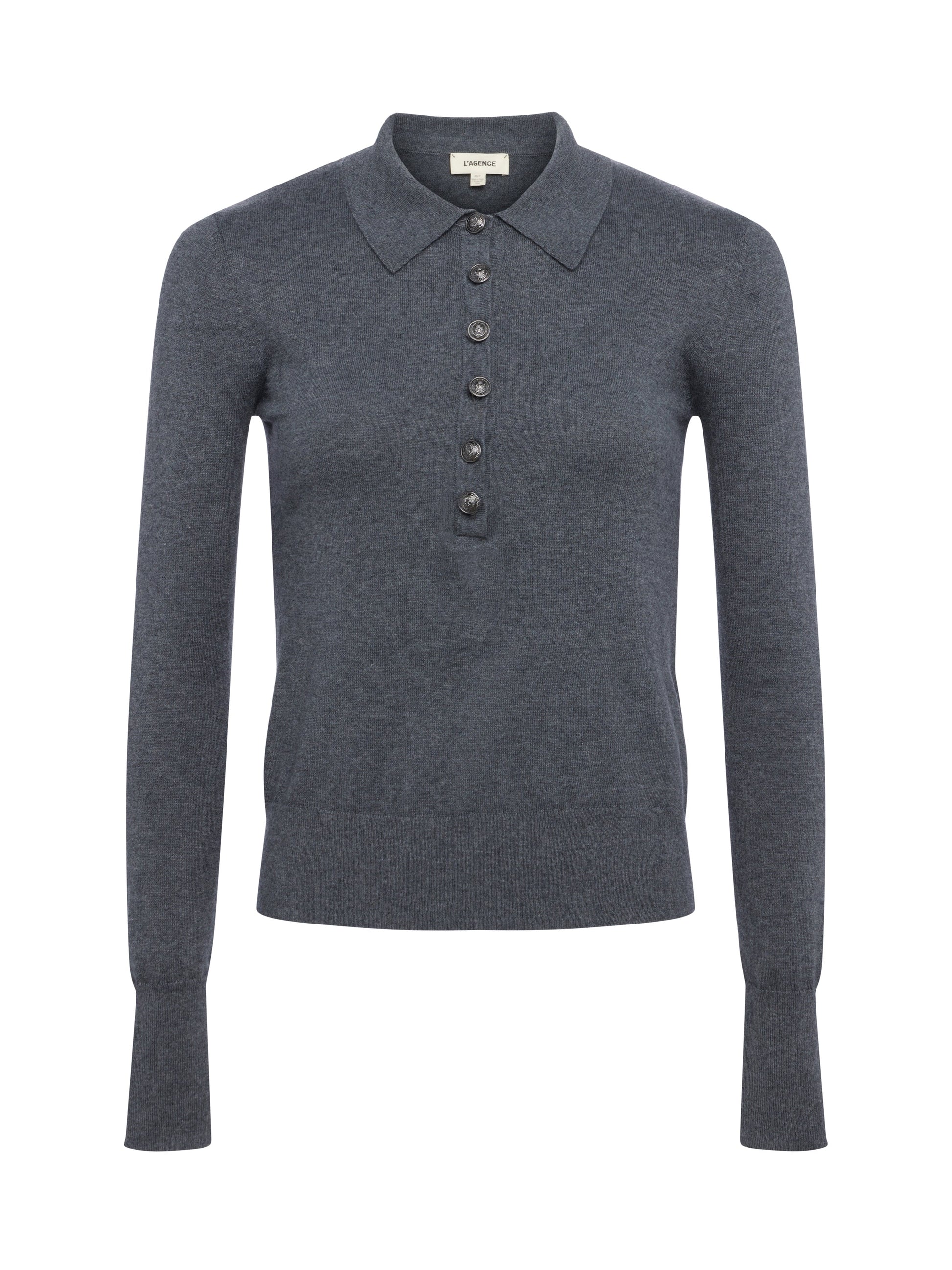 The L’AGENCE essential long sleeve knit and one of our fashion director’s favorite closet heroes. Now in a charcoal gray.
