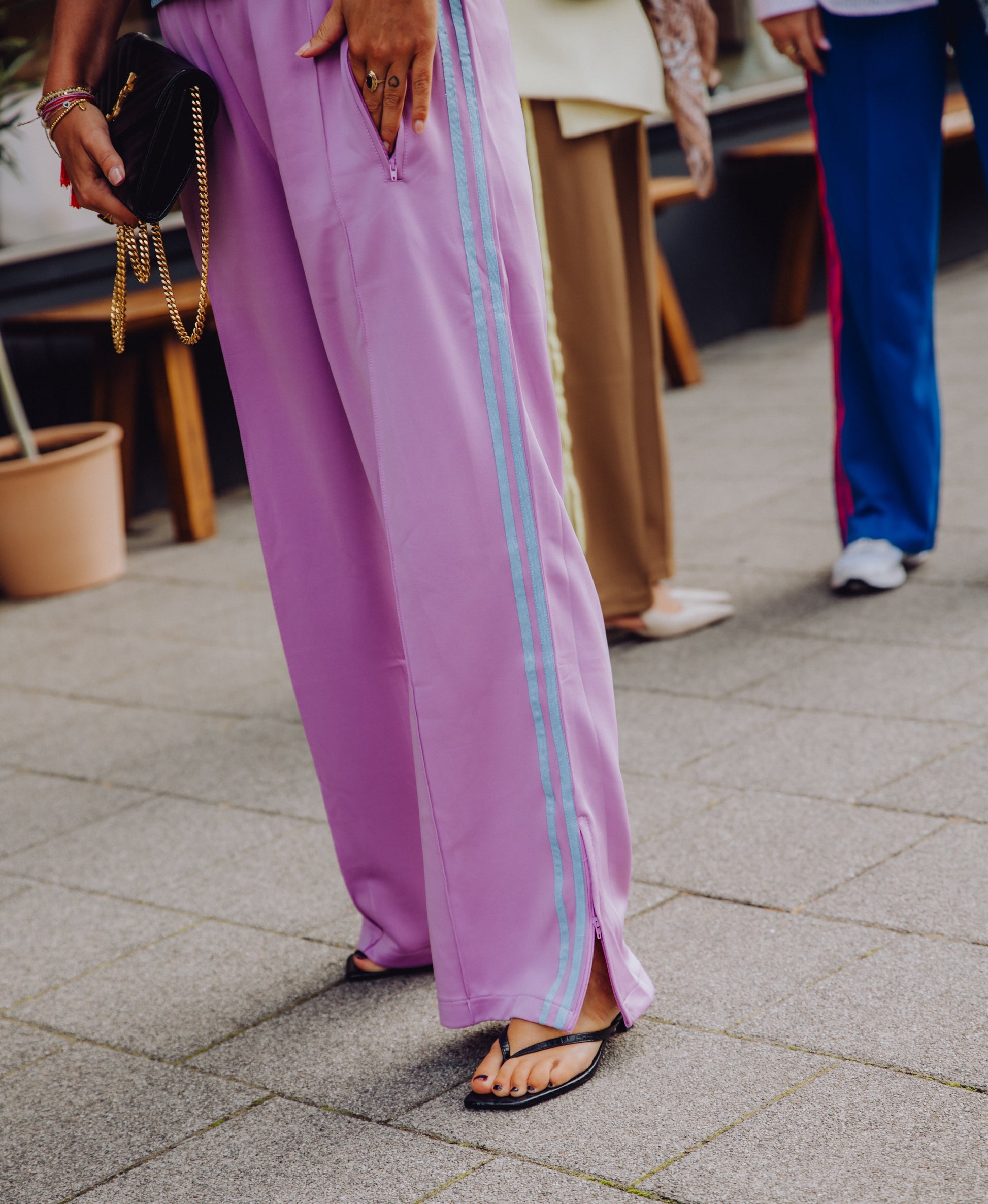 Eindelijk zijn ze er dan! Onze Stripe Short, maar dan in een lange variant! De Stripe Pants in lila is een comfortabele jogger met een elastische tailleband en twee steekzakken met rits en twee ritsjes aan de onderkant van de pijpen. Deze broek is leuk te combineren met één van onze andere kleurrijke items uit de collectie! Limited drop, designed by HYPE mode!