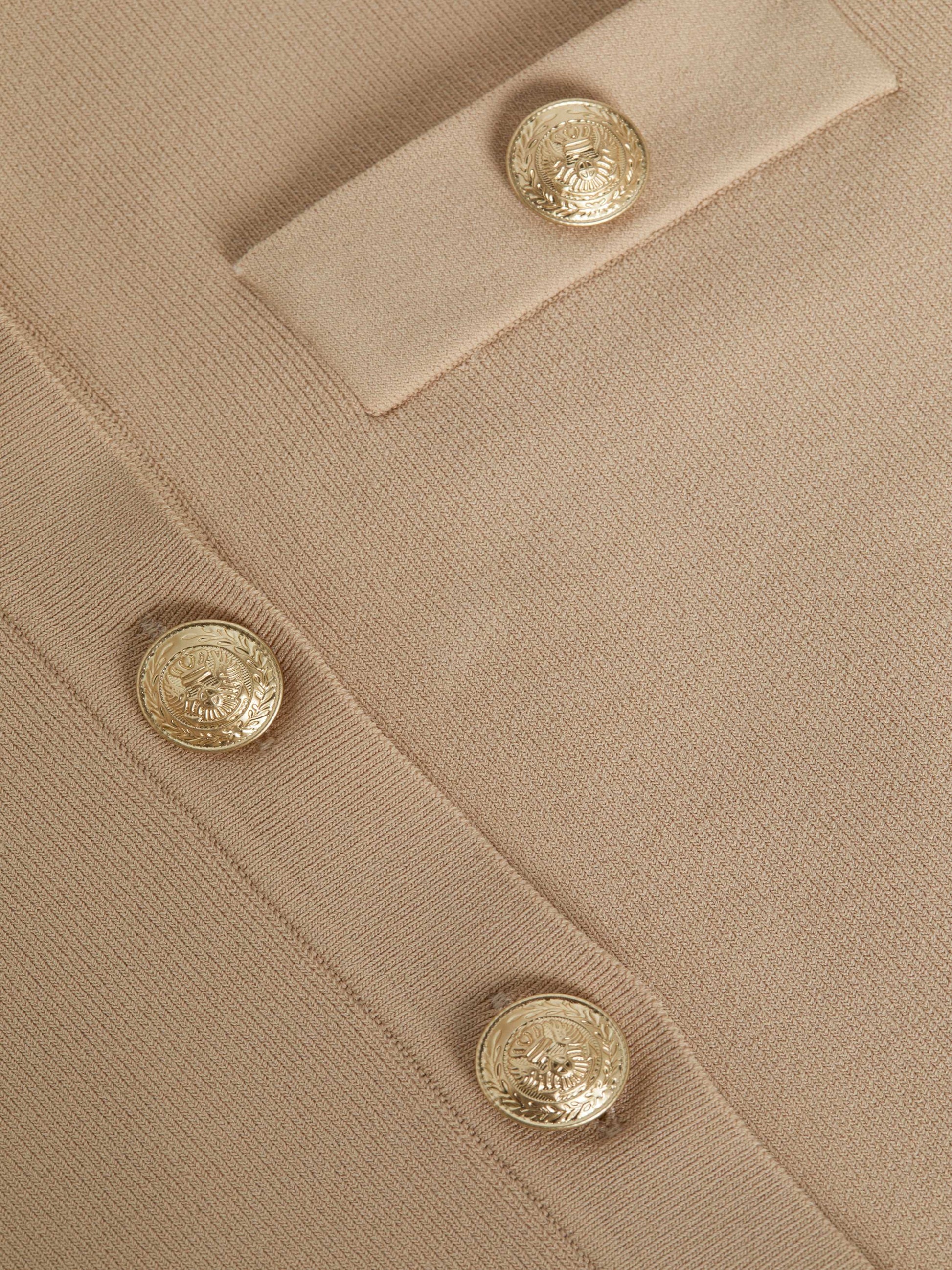 A chic jacket-inspired cardigan with a Parisian feel, now in a neutral tan. Wear it as a top or second layer all season, every season.
