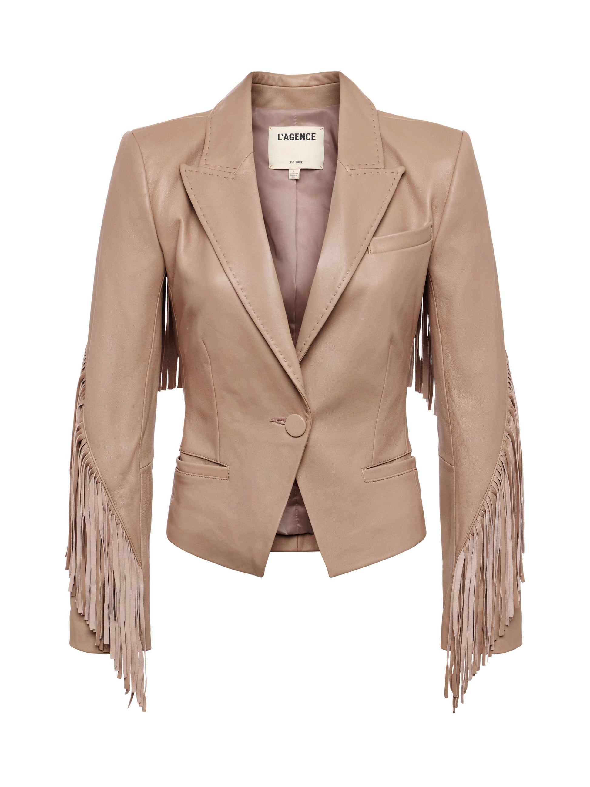 The Vashti is a western-inspired leather blazer defined by a striking hourglass figure and beautiful movement.