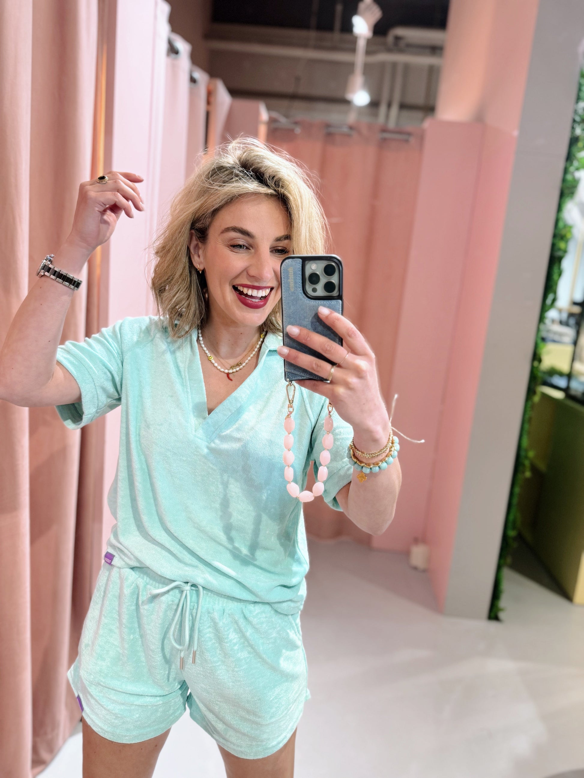 De Wendy Short in mint is een comfortabele losvallende short met een elastische tailleband en aantrekkoord. De short is voorzien van twee steekzakken en twee nepzakken op de achterkant en is gemaakt van een badstof. Combineer de Wendy Short met de Wendy Polo voor een complete set!