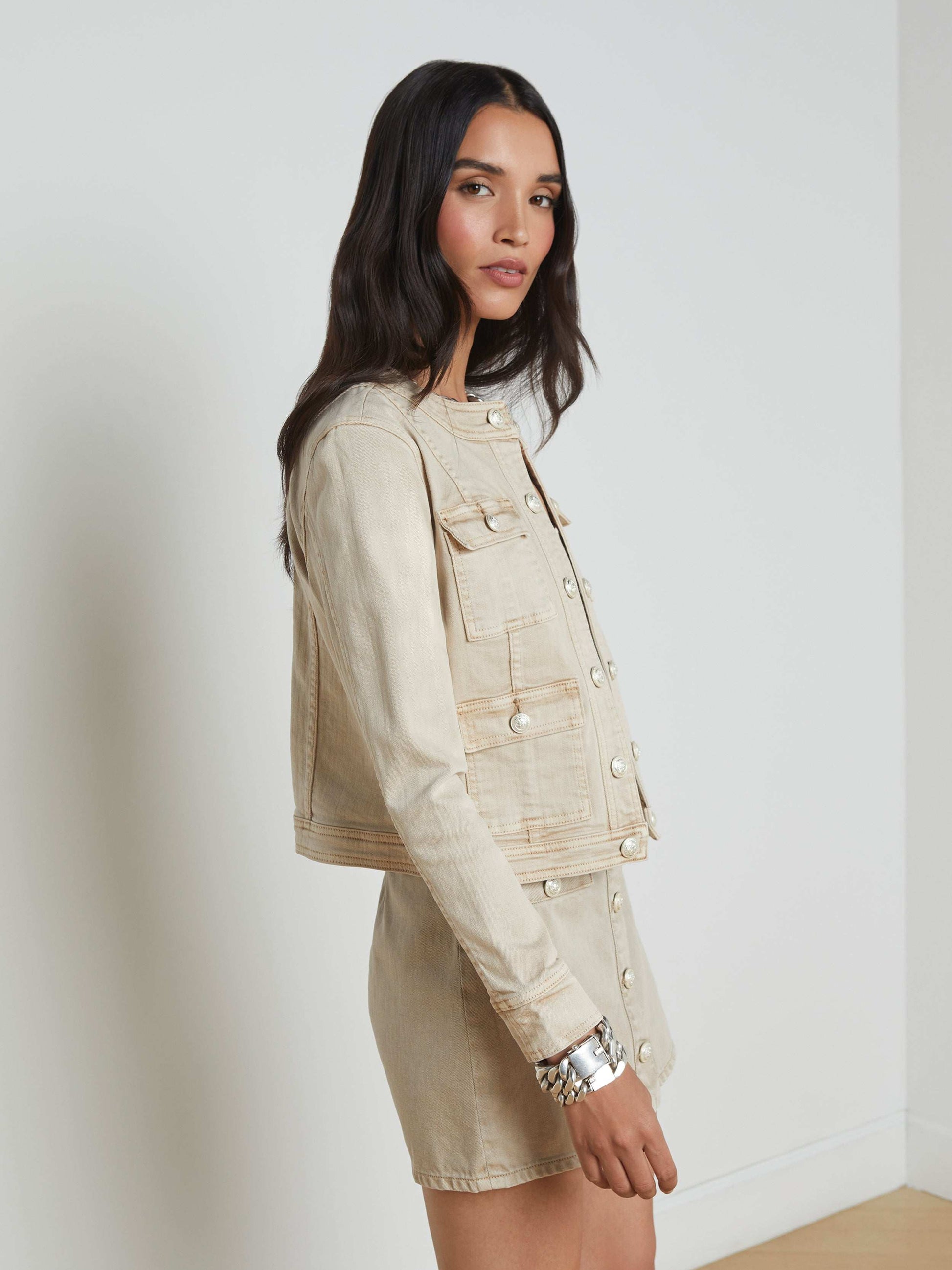 A jean jacket with the polish of a blazer. Now back in a versatile neutral.