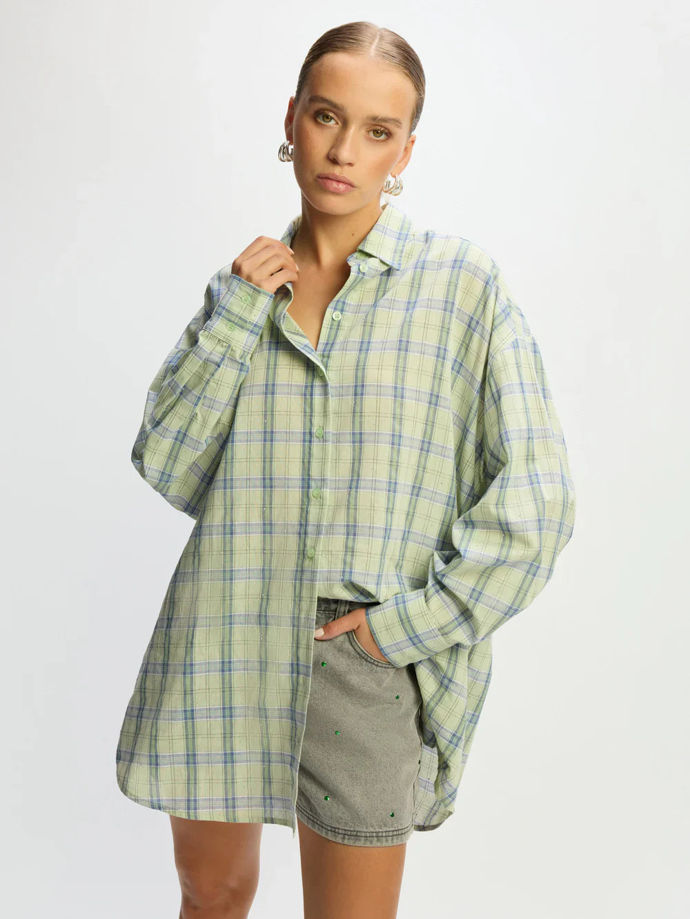 De Zaar Short in mid grey is een losvallende short met groene studs. De short is gemaakt van een denim stof en heeft meerdere zakken. Combineer deze short met de Didi Blouse voor een complete set!